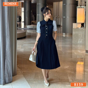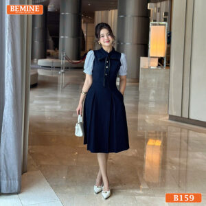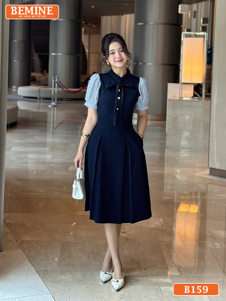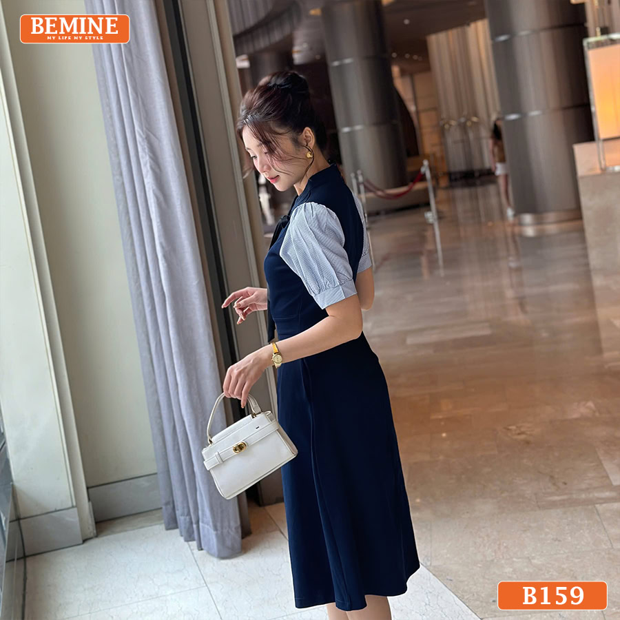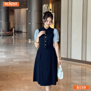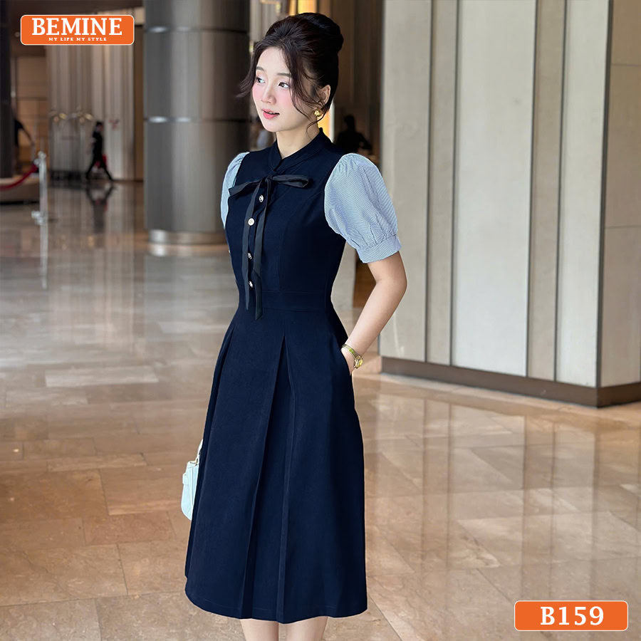 Đầm thiết kế BEMINE cổ trụ phối nơ dáng chữ A phù hợp đi làm-B159