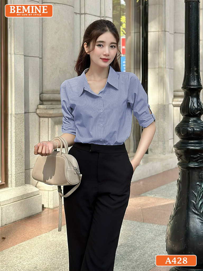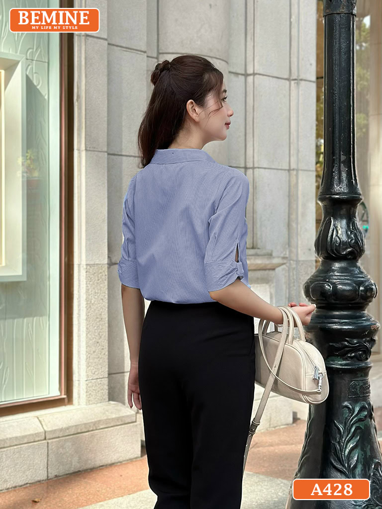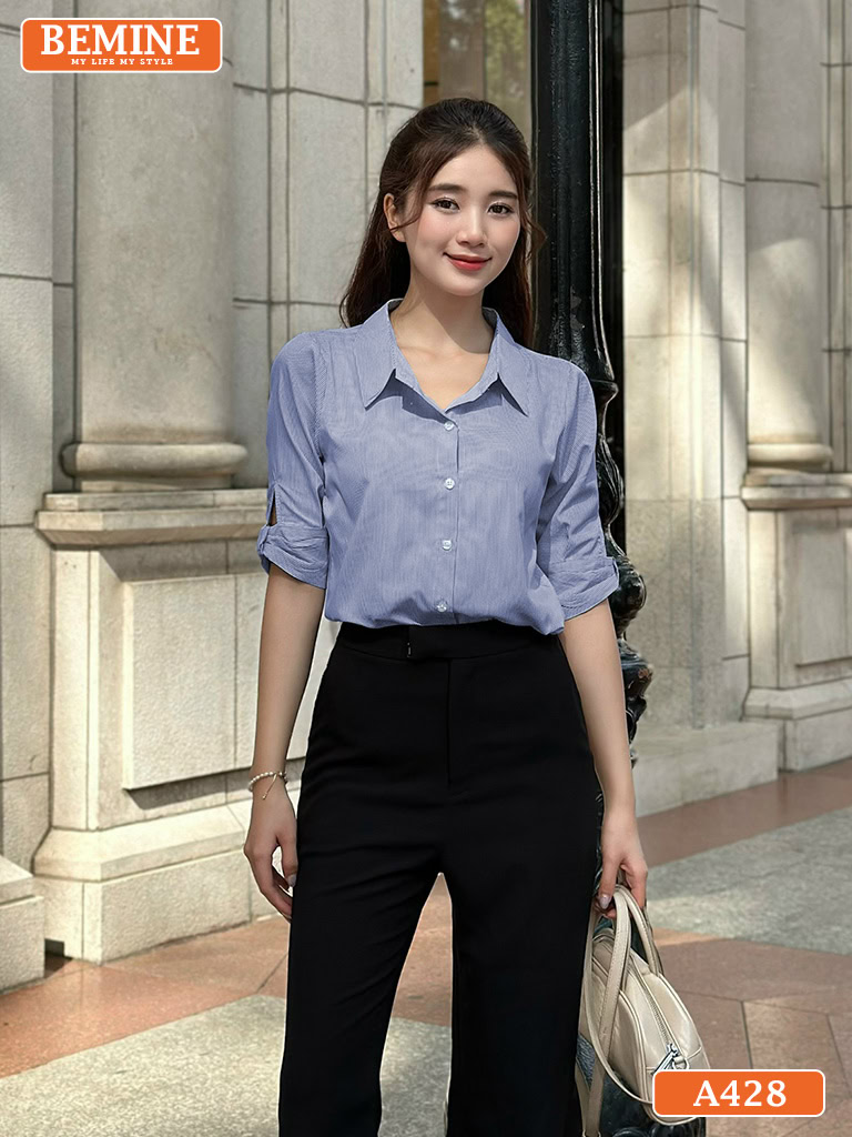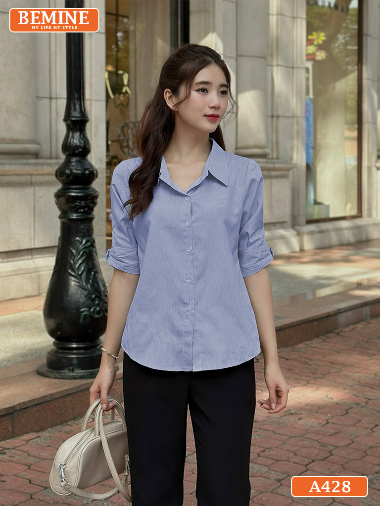 Áo sơ mi BEMINE nữ tay lửng kẻ sọc A428 phù hợp cho cả môi trường công sở, các buổi gặp gỡ đối tác, dạo phố hay tham gia sự kiện nhẹ nhàng.
