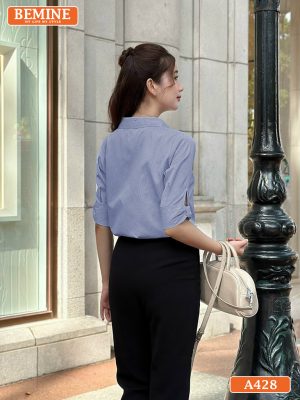 Áo sơ mi BEMINE nữ tay lửng kẻ sọc A428 – Sự lựa chọn hoàn hảo cho phong cách công sở thanh lịch