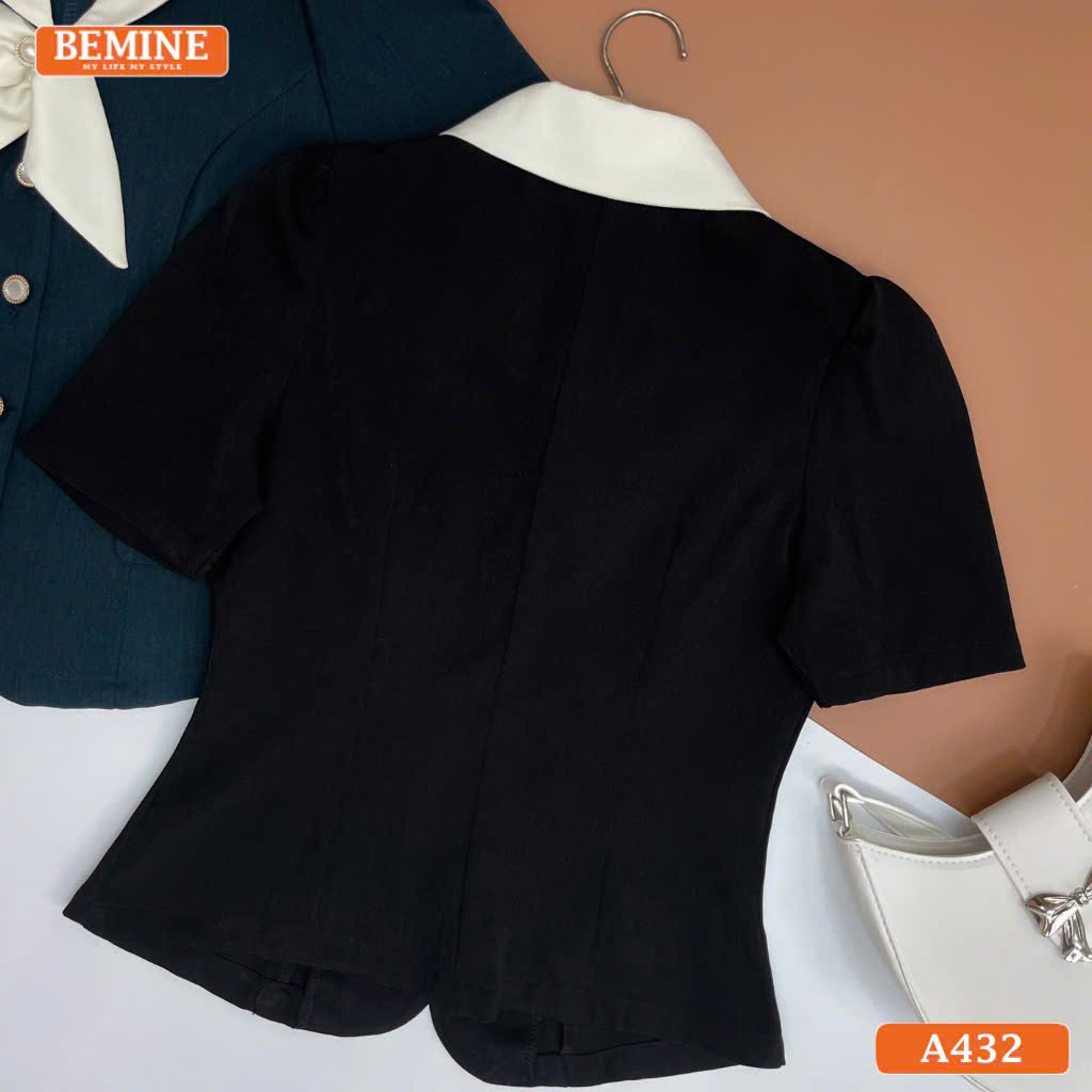 Áo thiết kế BEMINE cổ nơ cách điệu tay ngắn A432 – Chất liệu cotton Thái cao cấp, thiết kế thanh lịch với cổ nơ tinh tế, phom dáng chuẩn cho phụ nữ công sở. Sở hữu ngay để tỏa sáng với phong cách chuyên nghiệp nơi văn phòng!