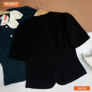 Áo thiết kế BEMINE cổ tròn phối lá tay ngắn A434 được làm từ chất liệu cotton Thái cao cấp, đảm bảo độ bền theo thời gian. Đây không chỉ là một món đồ thời trang mà còn là một khoản đầu tư thông minh cho tủ đồ công sở của bạn.