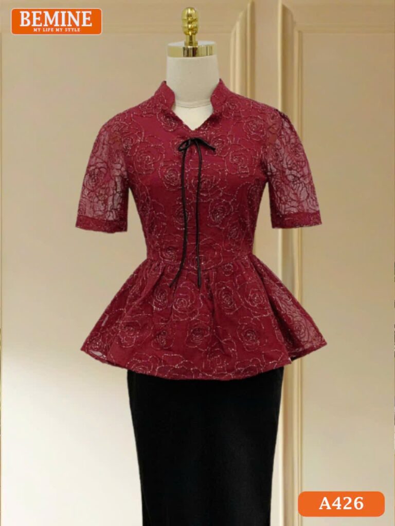 Áo thiết kế BEMINE dáng peplum cổ V thêu hoa A426 – Sự lựa chọn hoàn hảo cho phong cách thanh lịch