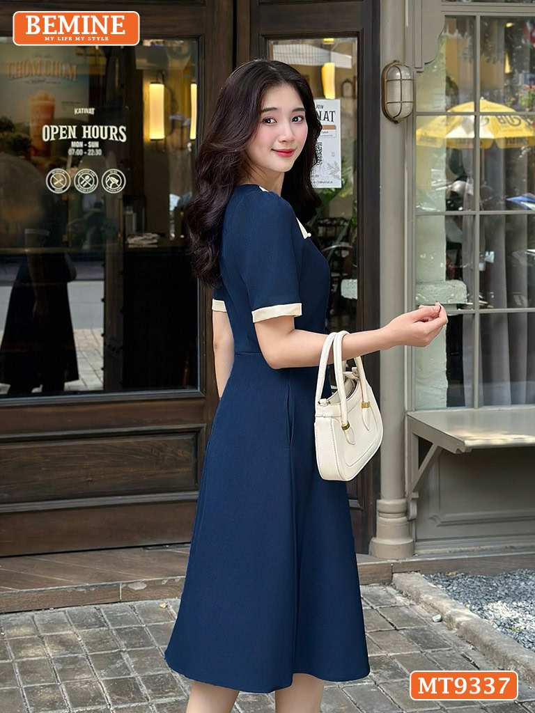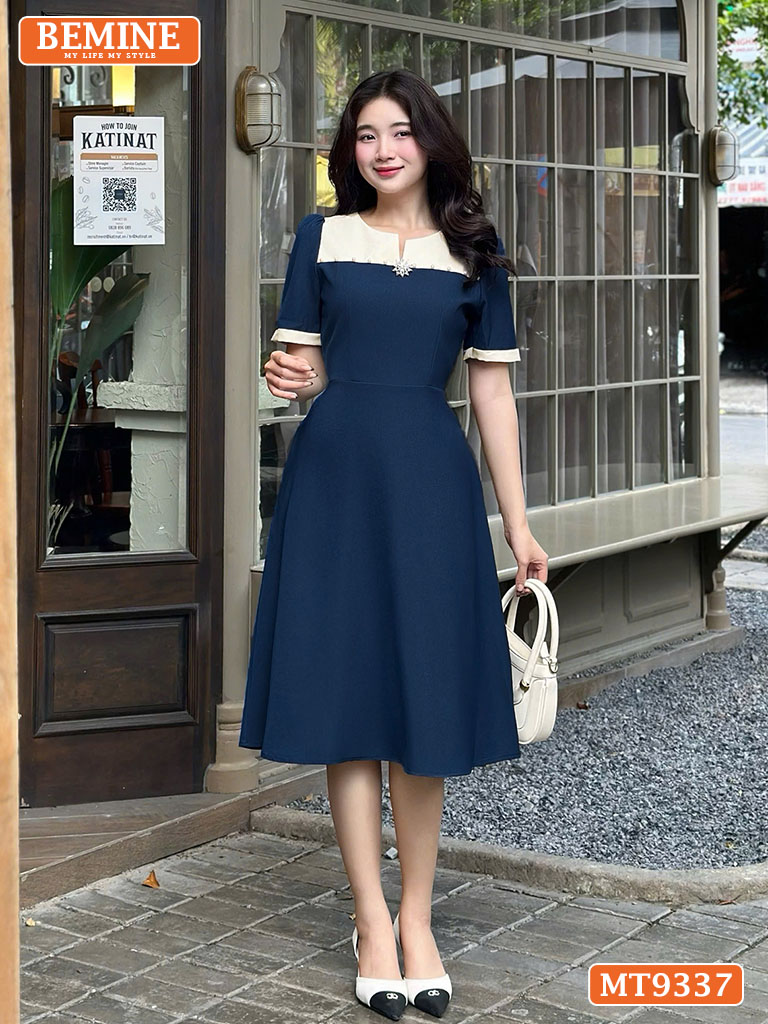 Đầm cổ tròn phối viền ngọc dáng chữ A MT9337 – Thanh Lịch và Hiện Đại