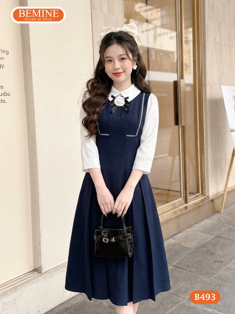 Form dáng của mẫu váy cổ đức tay lửng này là dáng chữ A kinh điển. BEMINE đã tính toán độ xòe vừa phải của chân váy để khi Chị bước đi, tà váy có độ rủ tự nhiên, che tuyệt đối phần đùi và hông to. Nếu Chị đang tìm kiếm một chiếc đầm xòe chữ a cổ sơ mi vừa kín đáo vừa sang trọng, thì B493 chính là câu trả lời hoàn hảo nhất. Đặc biệt, chi tiết cài hoa thủ công tặng kèm giúp bộ trang phục thêm phần nữ tính, thoát khỏi vẻ cứng nhắc thường thấy của thời trang công sở truyền thống.