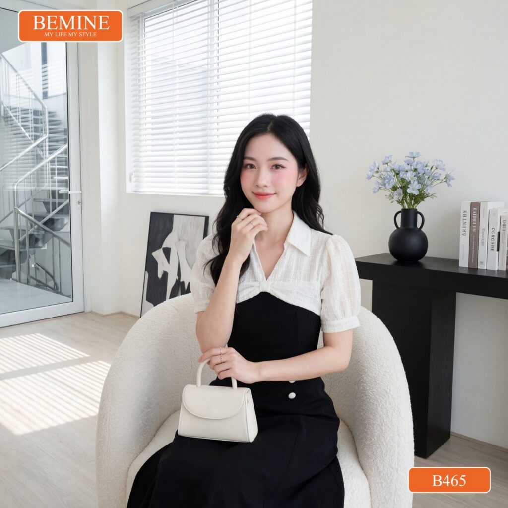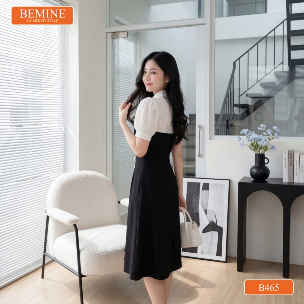 Khi bắt tay vào thực hiện mẫu thiết kế B465, đội ngũ tại BEMINE đã dành nhiều tuần để nghiên cứu về vóc dáng đặc trưng của phụ nữ Việt Nam, đặc biệt là các Chị em khối văn phòng thường phải ngồi nhiều. Chúng tôi nhận thấy rằng, nỗi lo lớn nhất của Chị chính là vòng eo không còn thon gọn và sự gò bó của trang phục sau 8 tiếng làm việc. Chính vì vậy, chiếc đầm thiết kế BEMINE chữ a cổ sơ mi ren thêu hoa B465 ra đời như một giải pháp thời trang toàn diện.