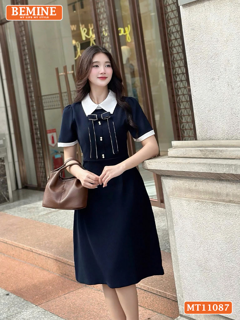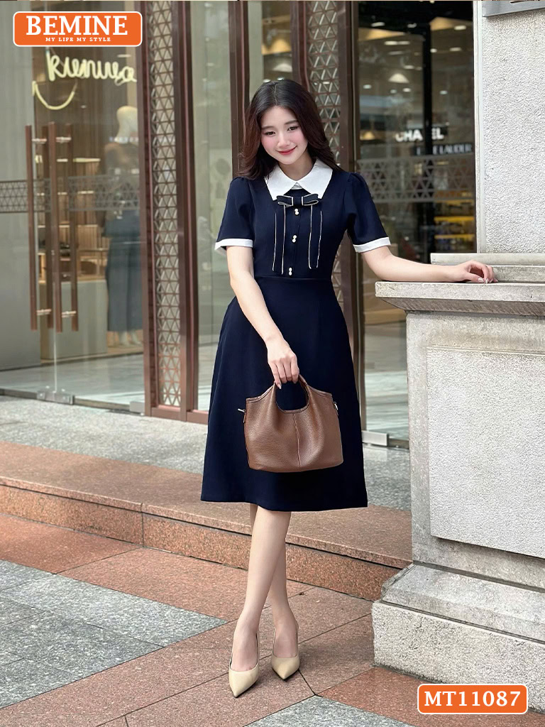 Đầm thiết kế BEMINE cổ đức đính nơ có viền MT11087 với chất liệu cotton Hàn cao cấp, chiết eo cao che bụng hiệu quả. Tôn dáng hoàn hảo cho phong cách công sở thanh lịch và dự tiệc sang trọng.