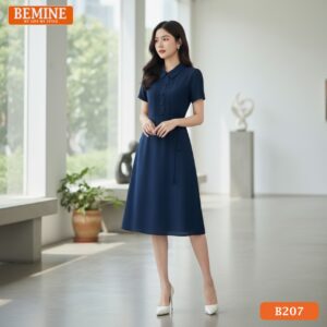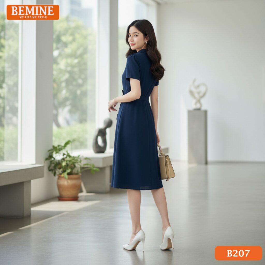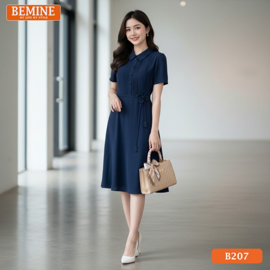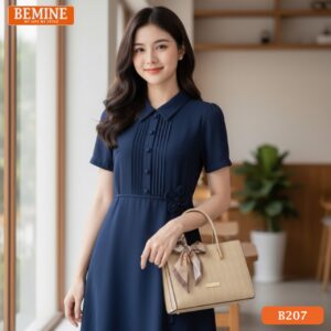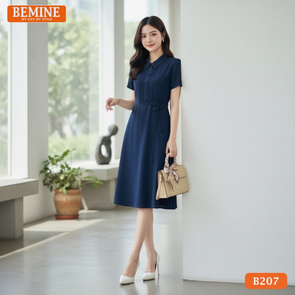 Đầm thiết kế BEMINE cổ đức eo có đai hoa dáng chư A phù hợp đi làm-B207
