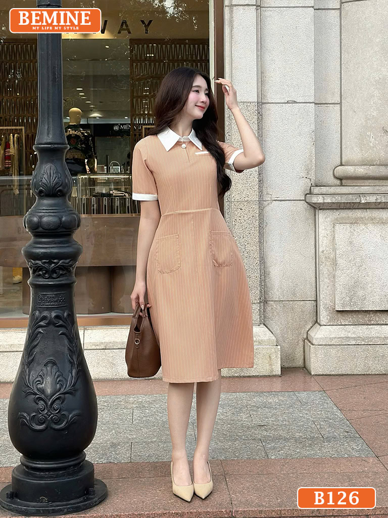 Đầm thiết kế BEMINE cổ đức họa tiết sọc B126 – Thanh Lịch và Thoải Mái