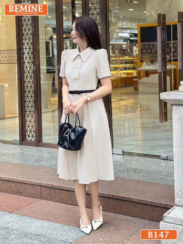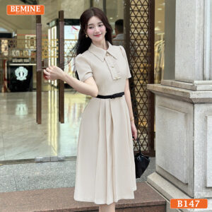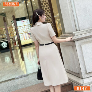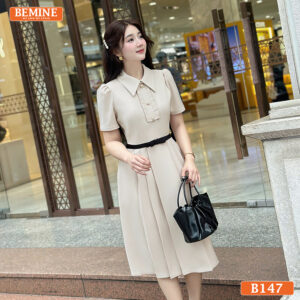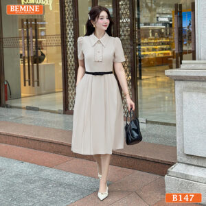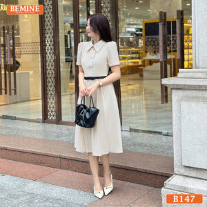 Đầm thiết kế BEMINE cổ đức phối dây nơ eo dáng chữ A phù hợp làm-B147