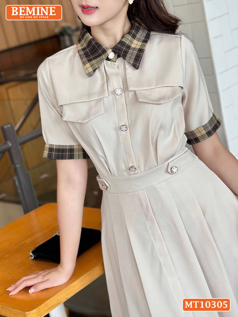 Tại công sở, đầm thiết kế BEMINE cổ đức phối kẻ caro MT10305 tạo nên vẻ ngoài chuyên nghiệp, thanh lịch, giúp bạn tự tin trong các cuộc họp quan trọng hay thuyết trình trước đông người. Thiết kế cổ đức phối kẻ caro mang đến sự nghiêm túc nhưng không kém phần thời trang.