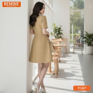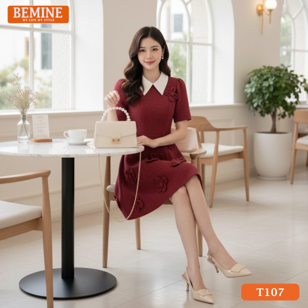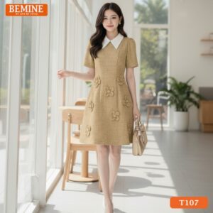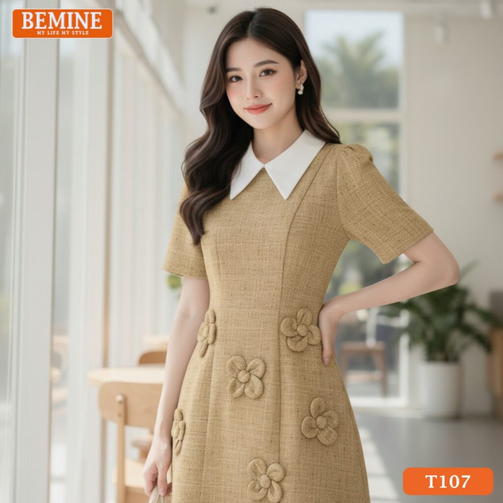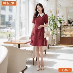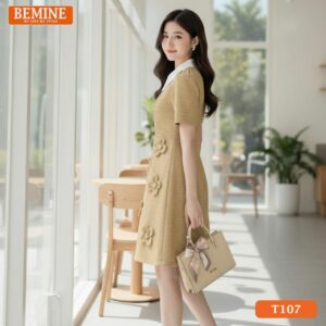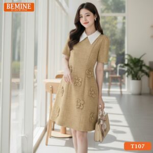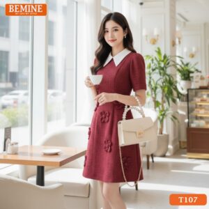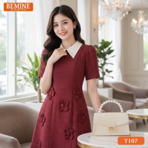 Đầm thiết kế BEMINE cổ đức tùng váy đính hoa cao cấp dáng chữ A phù hợp đi tiệc-T107