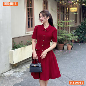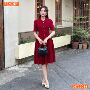Chi Tiết Sản Phẩm Đầm thiết kế BEMINE cổ đức tùng váy xếp ly MT10084