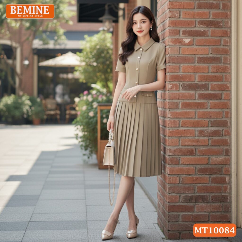Đầm Thiết Kế BEMINE Cổ Đức Tùng Váy Xếp Ly MT10084 – Nâng Tầm Phong Cách Công Sở