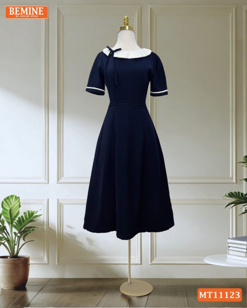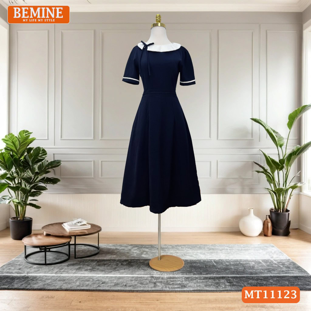 Đa Dạng Phong Cách Với Đầm Thiết Kế BEMINE Cổ Kiểu Lệch Đính Nơ MT11123