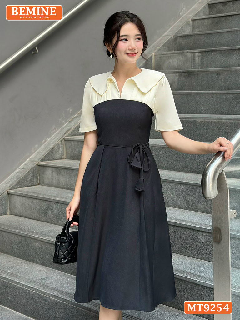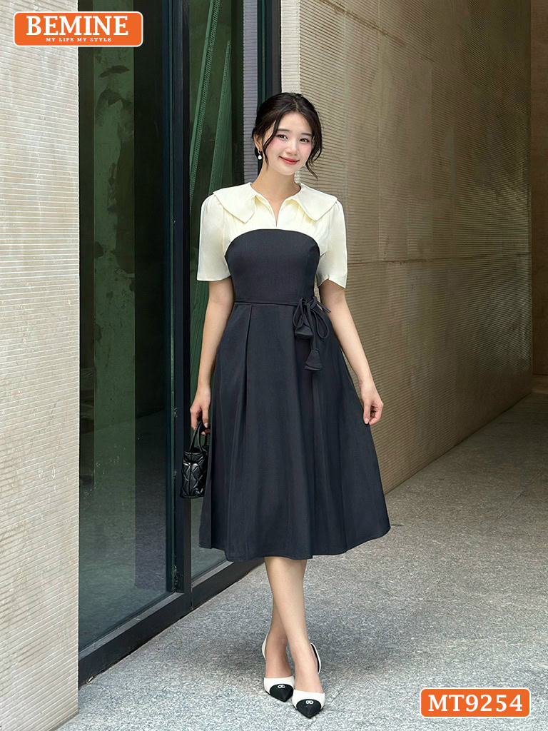 Cách phối đồ với Đầm thiết kế cổ kiểu xếp ly MT9254