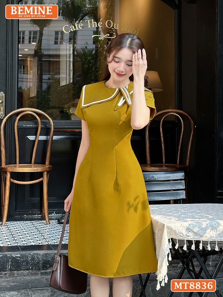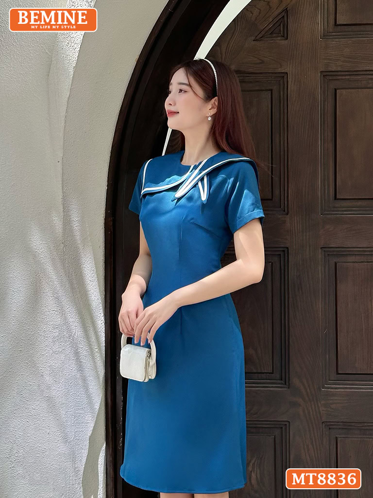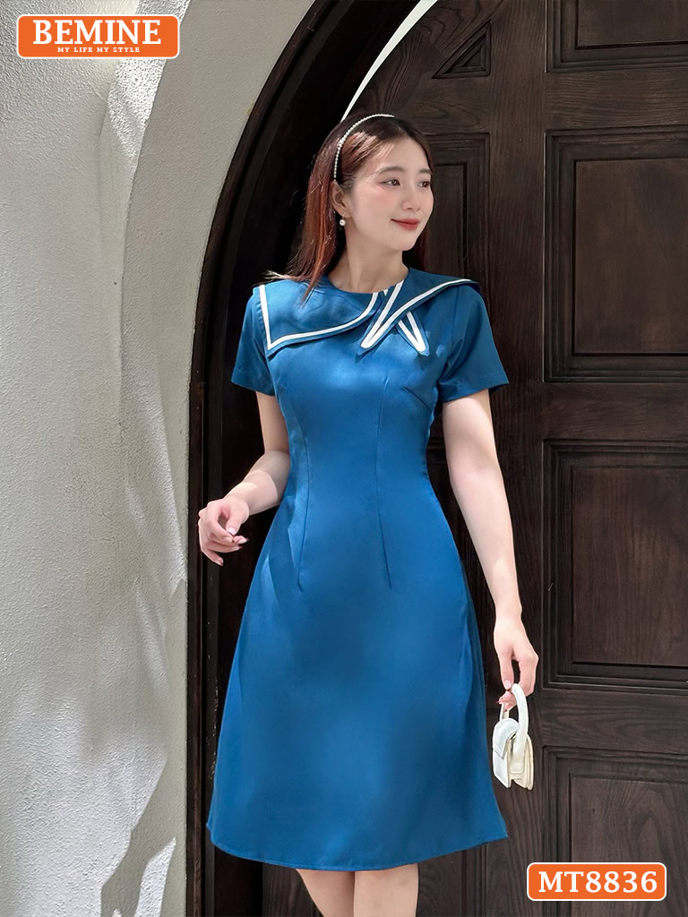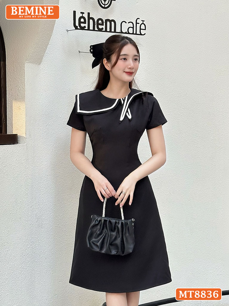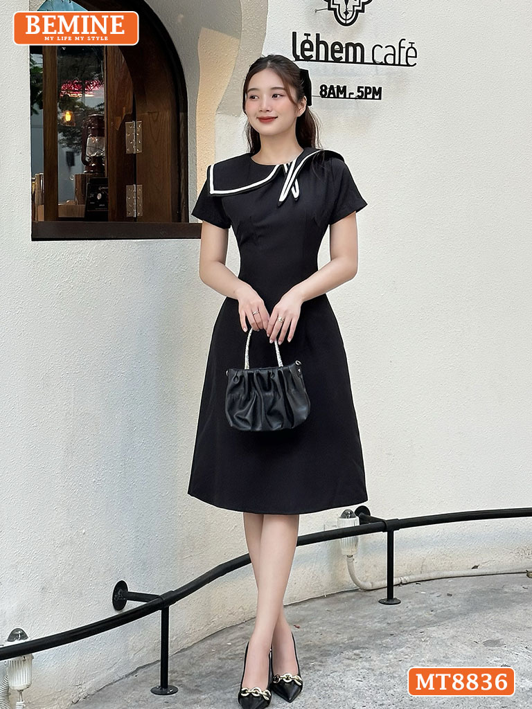 Đầm thiết kế BEMINE cổ nơ phối viền MT8836 – Thanh Lịch và Thoải Mái