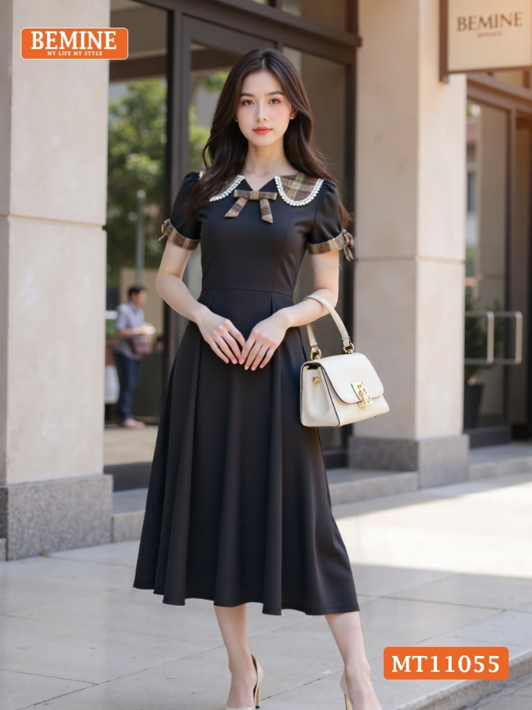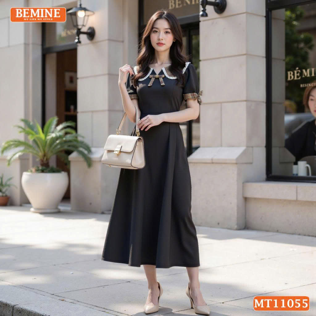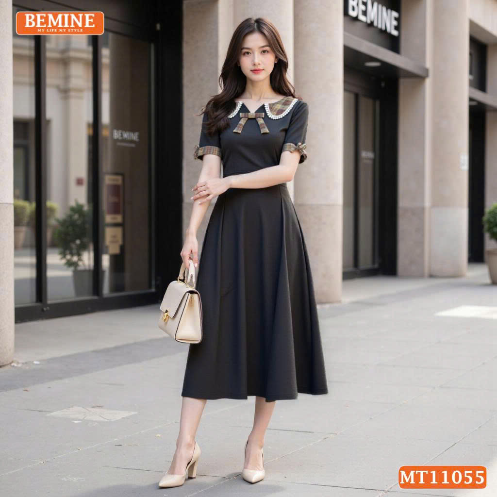 Đầm thiết kế BEMINE cổ phối caro viền ren MT11055 – Nét Thanh Lịch Cho Quý Cô Công Sở