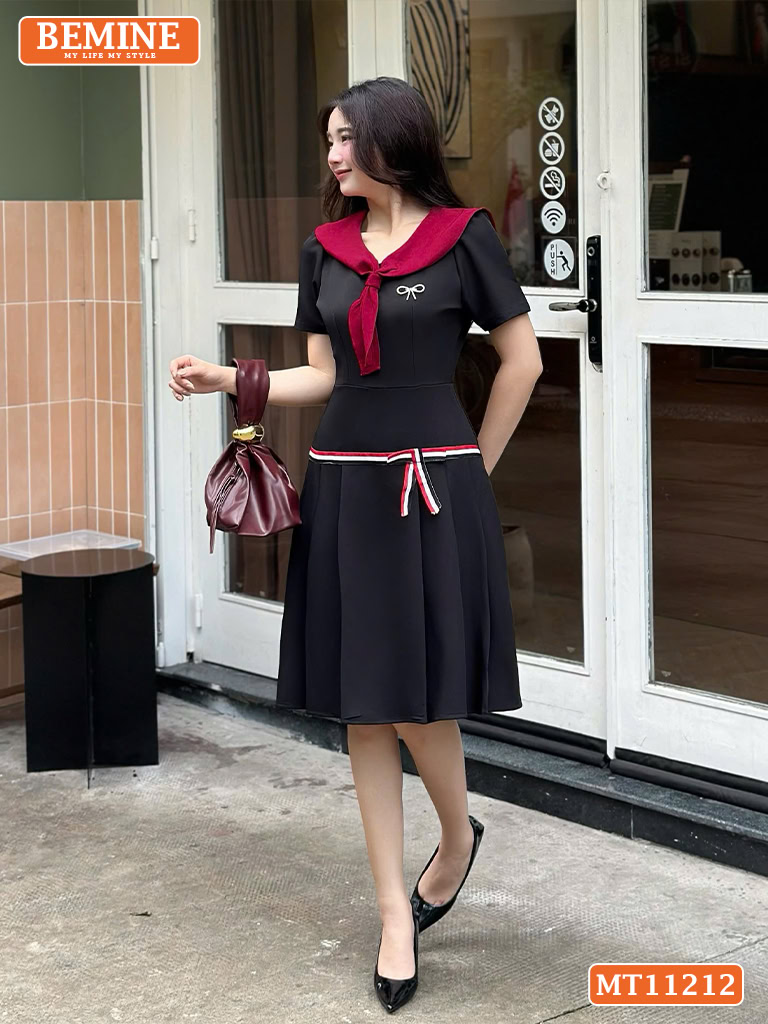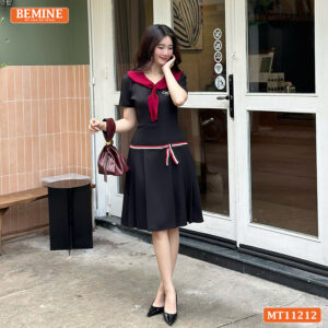Đầm Thiết Kế BEMINE Cổ Phối Cavat MT11212 – Thanh Lịch Tinh Tế và Hiện Đại