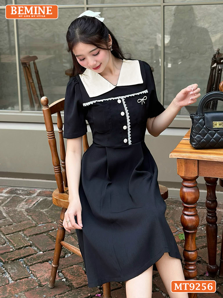 Đầm thiết kế BEMINE cổ phối đính nút viền ren MT9256 – Vẻ Đẹp Thanh Lịch và Tinh Tế