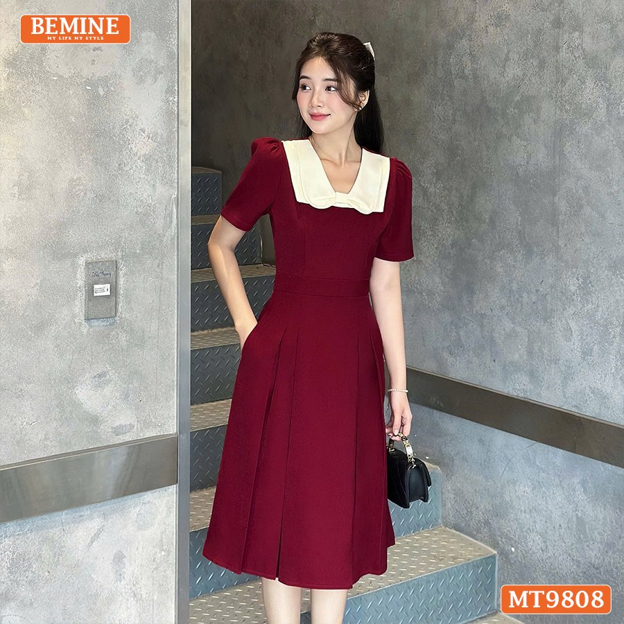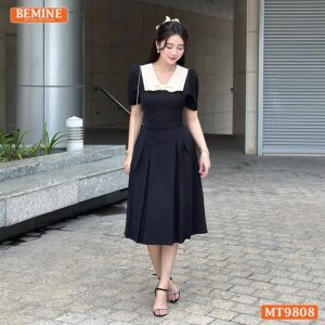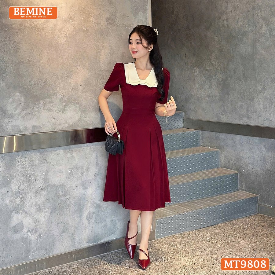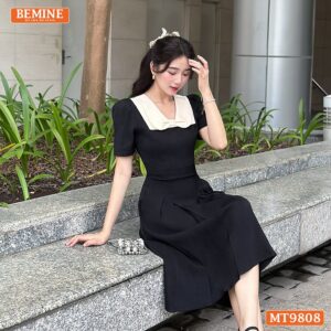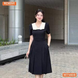 Đầm Thiết Kế BEMINE Cổ Phối Nơ Dáng Xòe MT9808 – Thanh Lịch và Hiện Đại