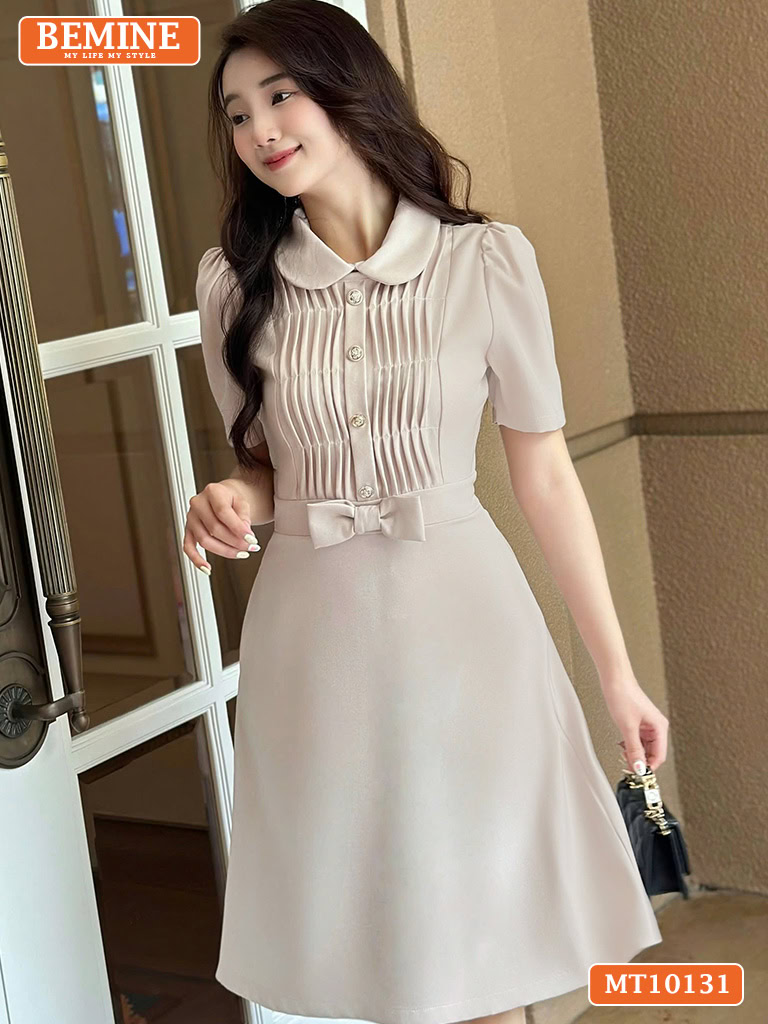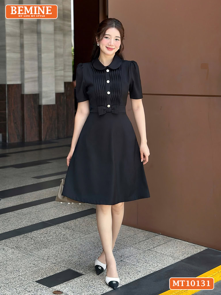 Tỏa sáng nơi công sở với đầm thiết kế BEMINE cổ sen xếp ly có nơ eo MT10131 khi kết hợp cùng giày cao gót màu nude hoặc đen cổ điển – lựa chọn an toàn nhưng luôn thanh lịch.