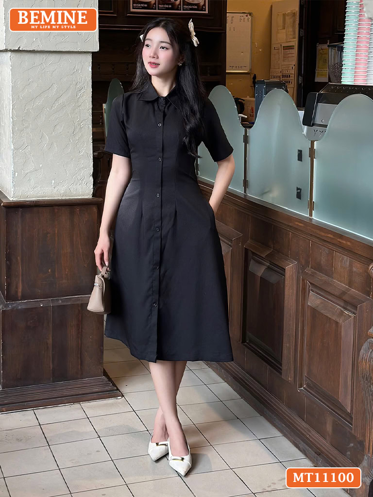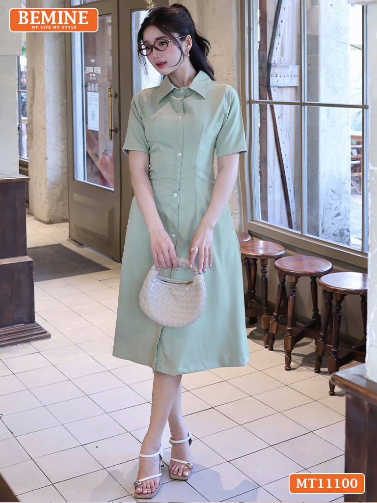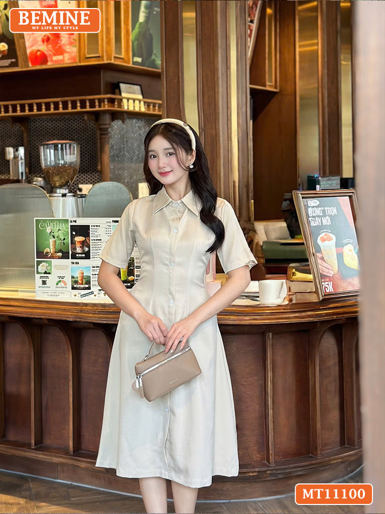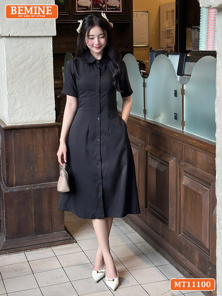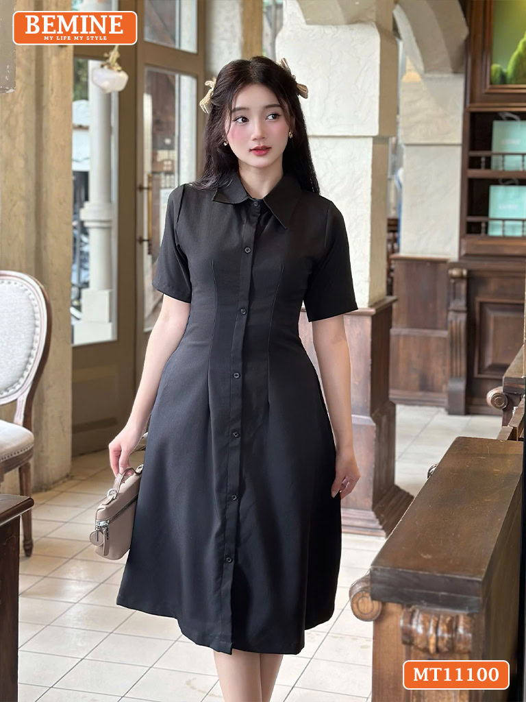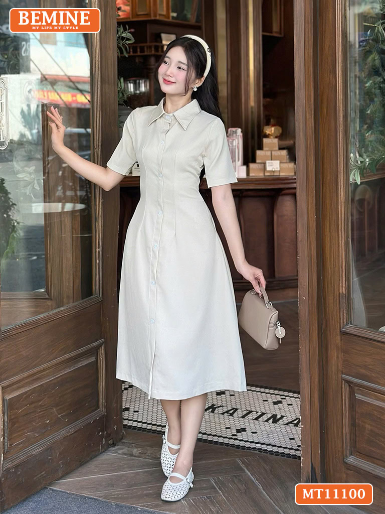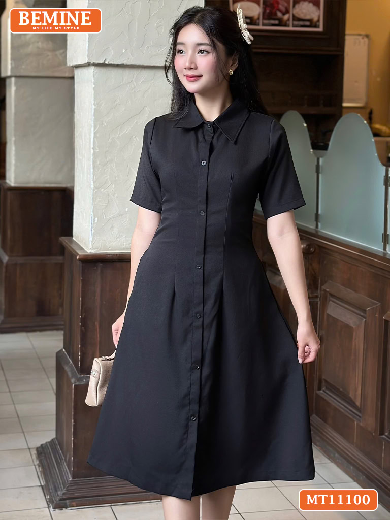 Đa Dạng Phong Cách Với Đầm Thiết Kế BEMINE Cổ Sơ Mi Có Cúc MT11100