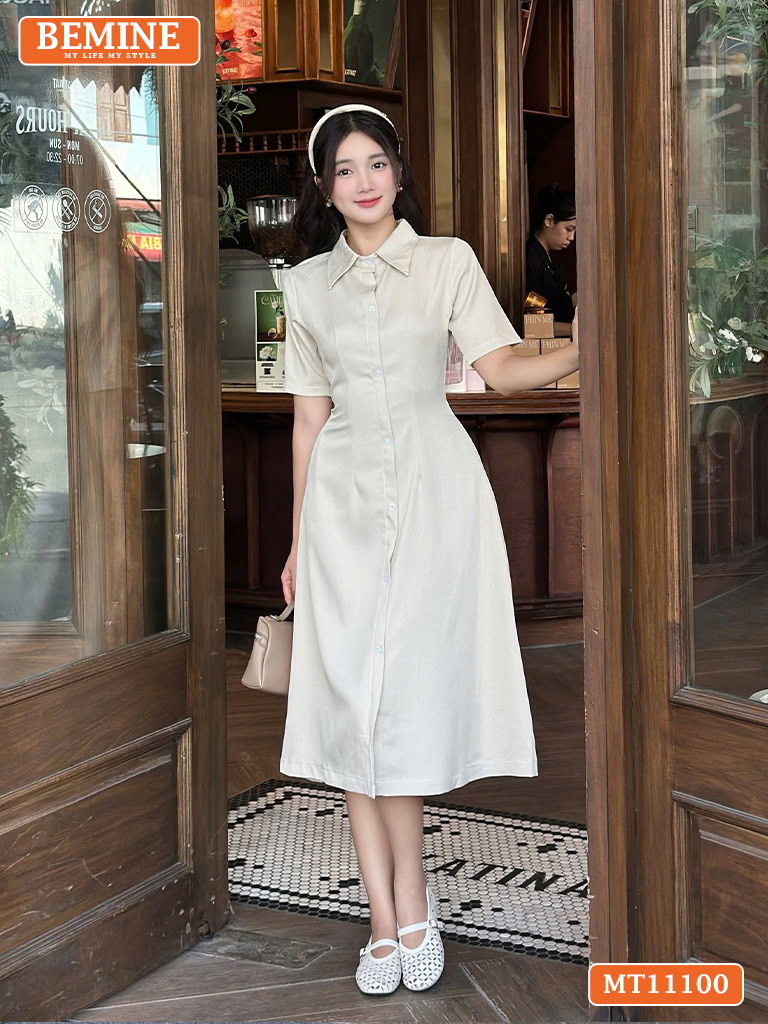 Đặc Điểm Nổi Bật Của Đầm Thiết Kế BEMINE Cổ Sơ Mi Có Cúc MT11100
