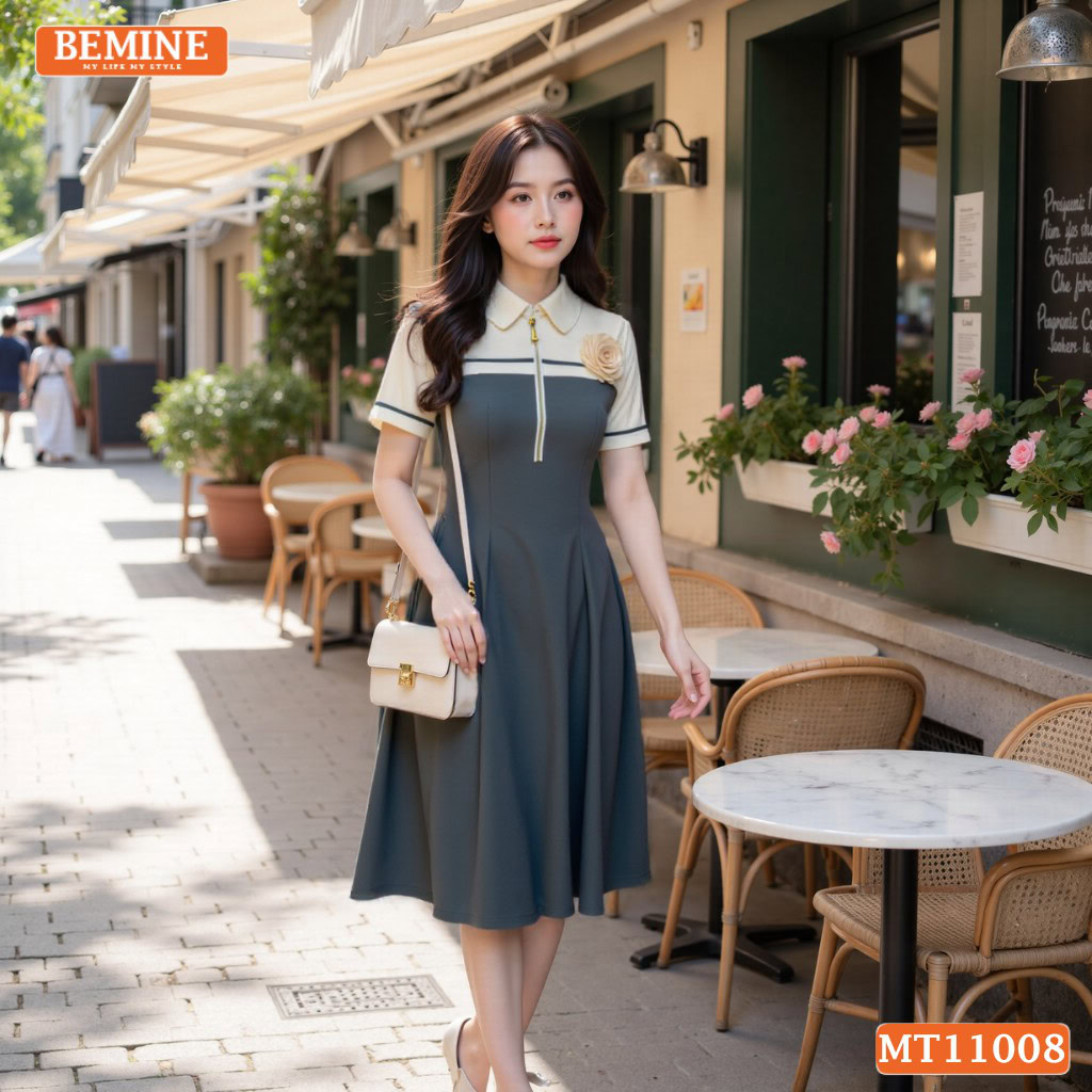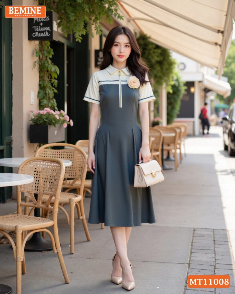 Đầm Thiết Kế BEMINE Cổ Sơ Mi Dây Kéo Trước MT11008 – Tôn Dáng Che Khuyết Điểm Hoàn Hảo