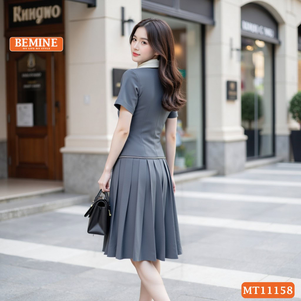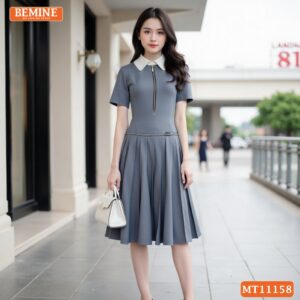 Đầm Thiết Kế BEMINE Cổ Sơ Mi Dây Kéo Trước MT11158 – Thanh Lịch Nơi Công Sở