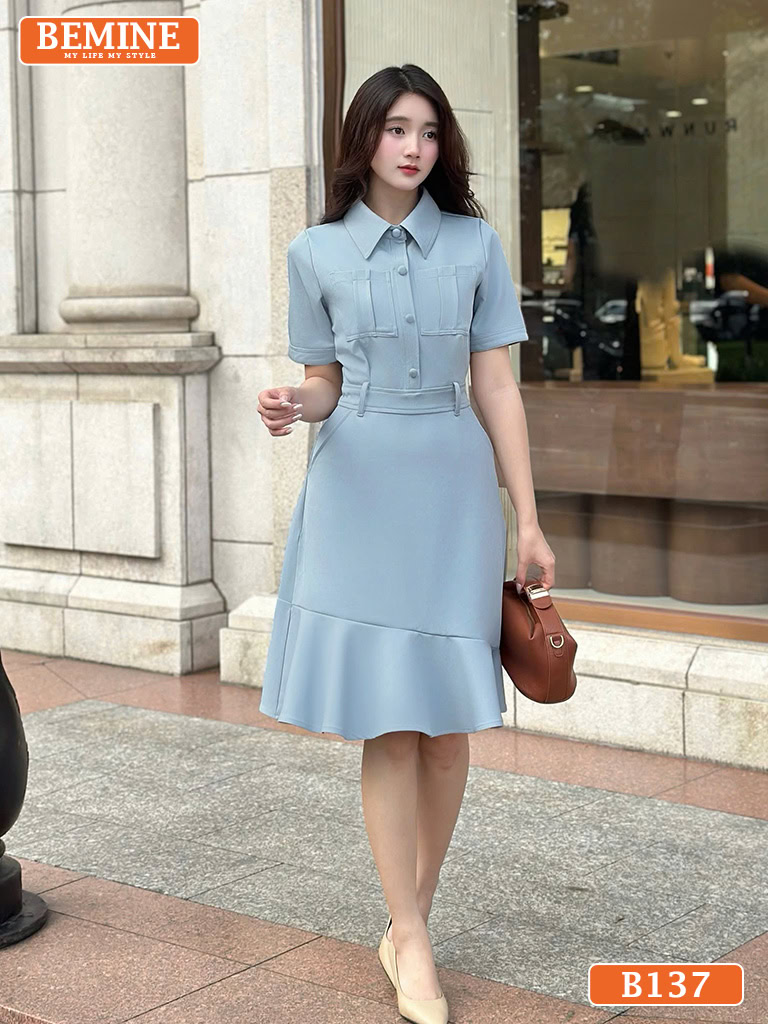 Đầm Thiết Kế BEMINE Cổ Sơ Mi Đính Cúc B137 – Thanh Lịch & Tự Tin Cho Nàng Công Sở