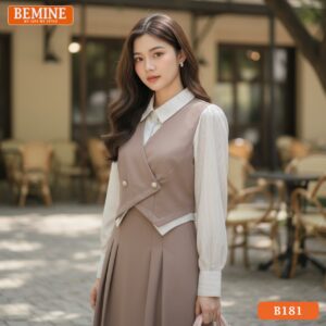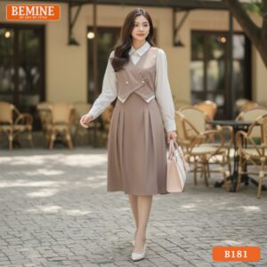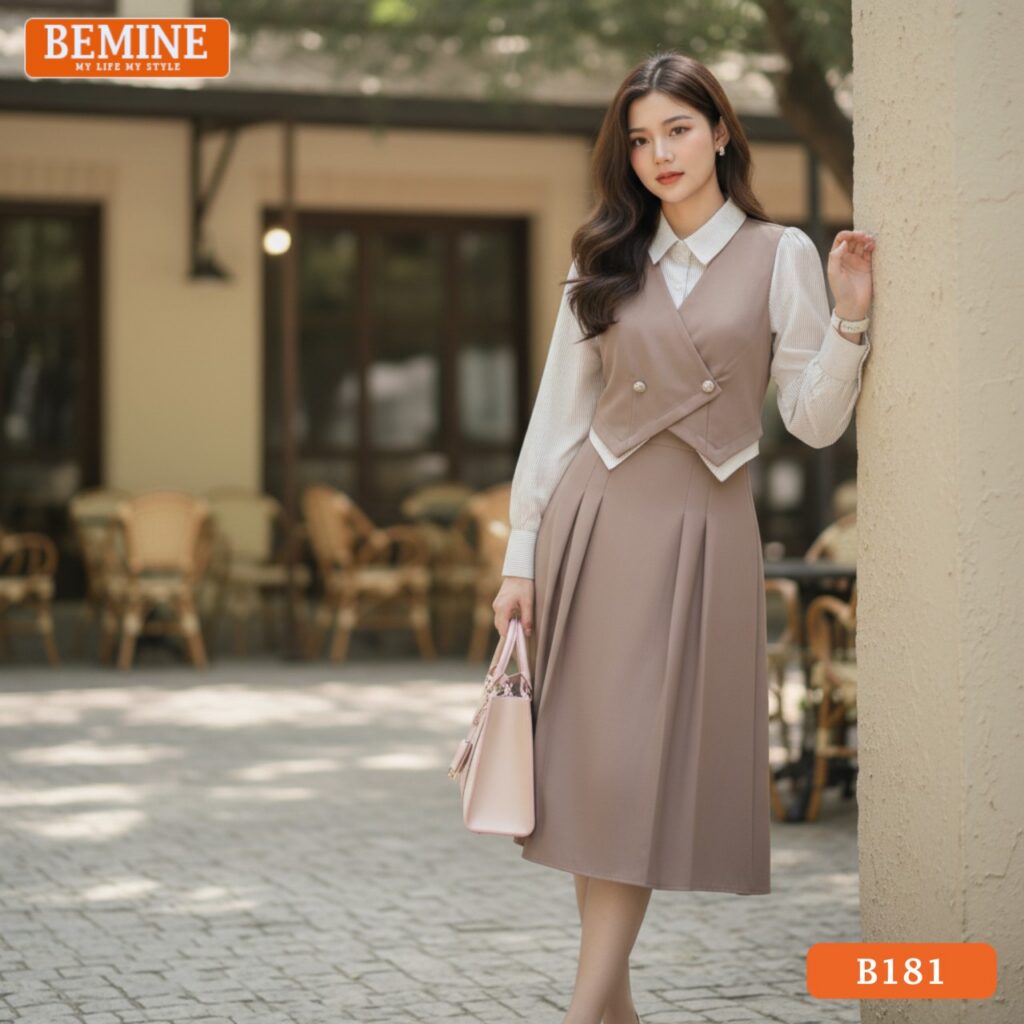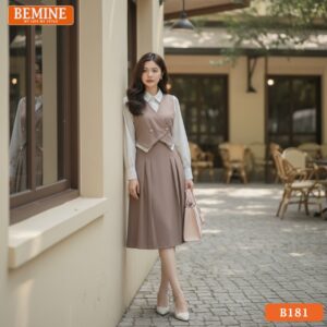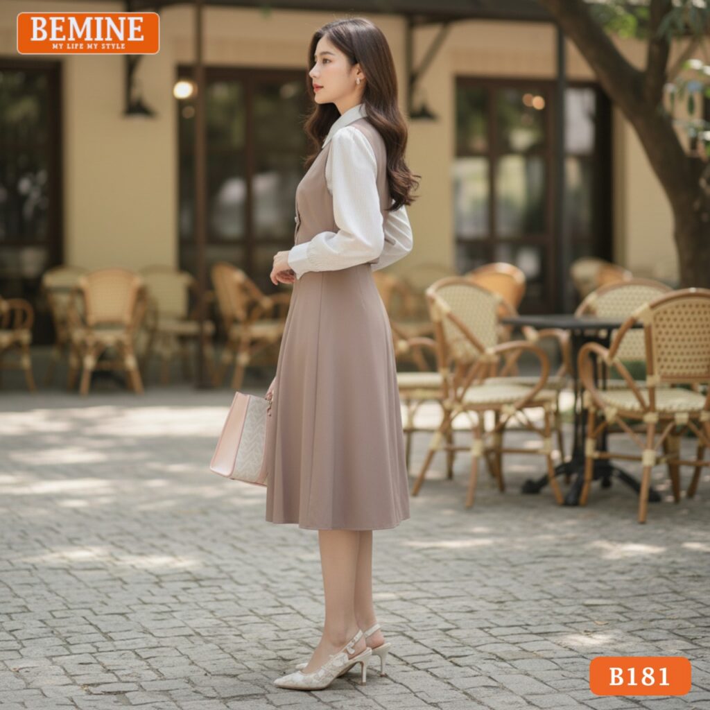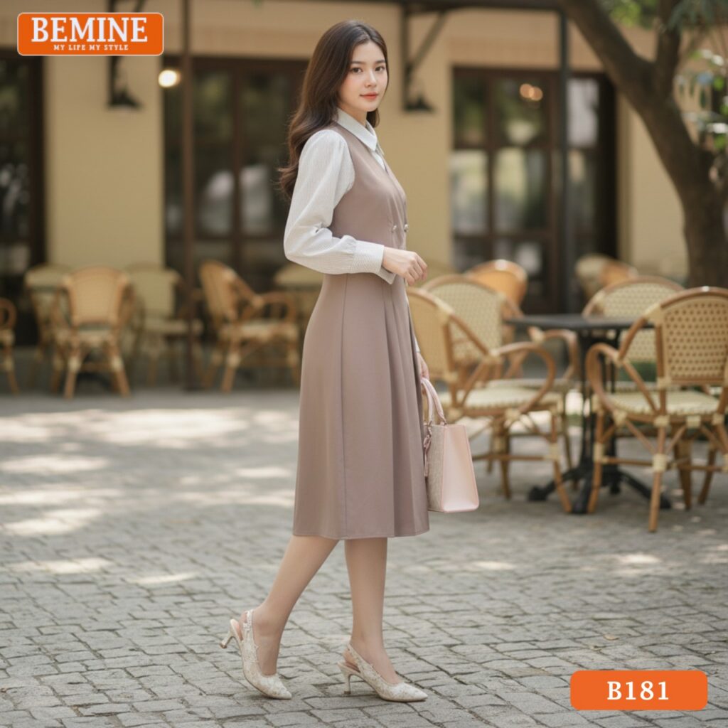 Đầm thiết kế BEMINE cổ sơ mi giả khoác tay dài dáng chữ A phù hợp đi làm-B181