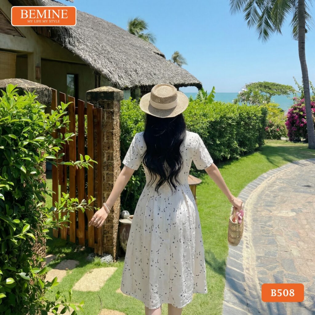 Trải nghiệm thực tế khi diện chiếc đầm này chính là sự nhẹ tênh và thoáng mát. Khác với những dòng vải thô cứng thông thường, chất lenin in hoa mà BEMINE lựa chọn có độ rủ vừa phải, tạo nên sự uyển chuyển trong từng bước đi. Đây thực sự là một mẫu đầm thiết kế mang tính ứng dụng cao, giúp Chị giải quyết bài toán “hôm nay mặc gì” chỉ trong tích tắc.