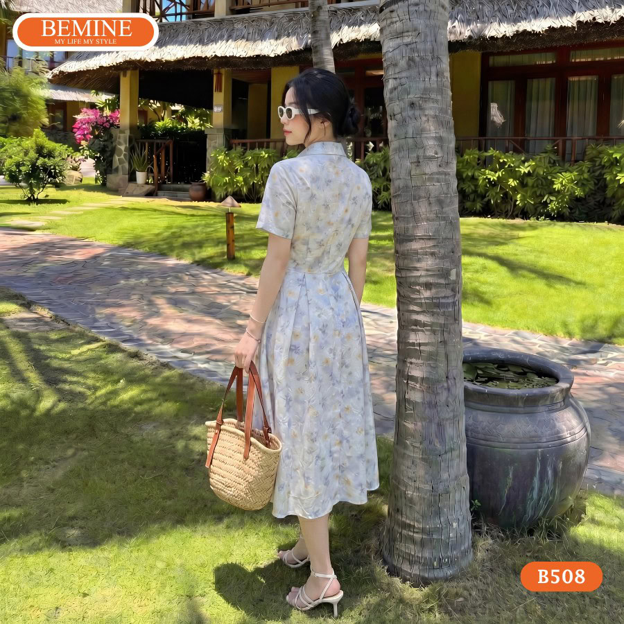 Khám phá sức hút từ đầm thiết kế BEMINE cổ sơ mi in hoa dáng dài B508