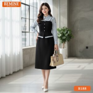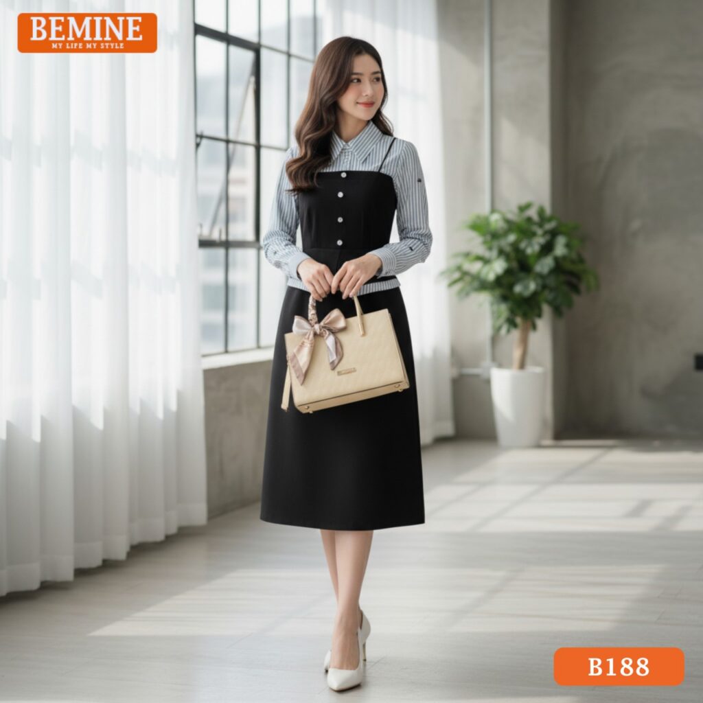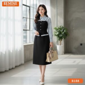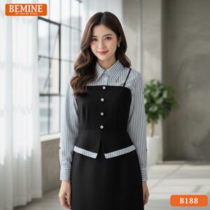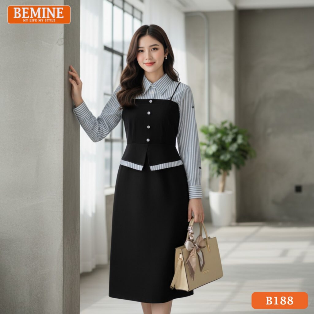 Đầm thiết kế BEMINE cổ sơ mi tay dài dáng peplum tùng váy chữ A phù hợp đi làm-B188