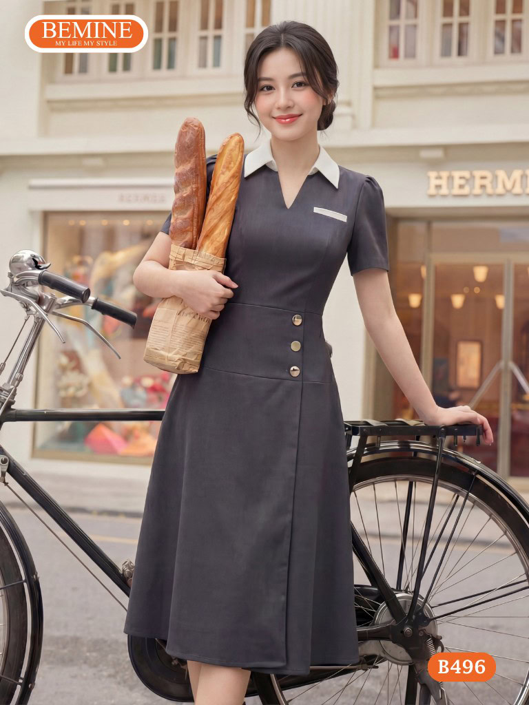 Tuy nhiên, với mẫu đầm thiết kế BEMINE cổ sơ mi túi mổ dáng chữ A đẹp B496, chúng tôi đã điều chỉnh độ xòe vừa phải, kết hợp cùng phần eo được định hình khéo léo để tạo hiệu ứng “vòng eo con kiến” mà không gây cảm giác gò bó. Đây chính là điểm khác biệt mà dòng đầm thiết kế của BEMINE luôn hướng tới: đẹp nhưng phải thực sự thoải mái.