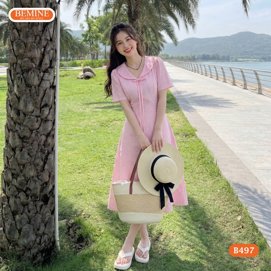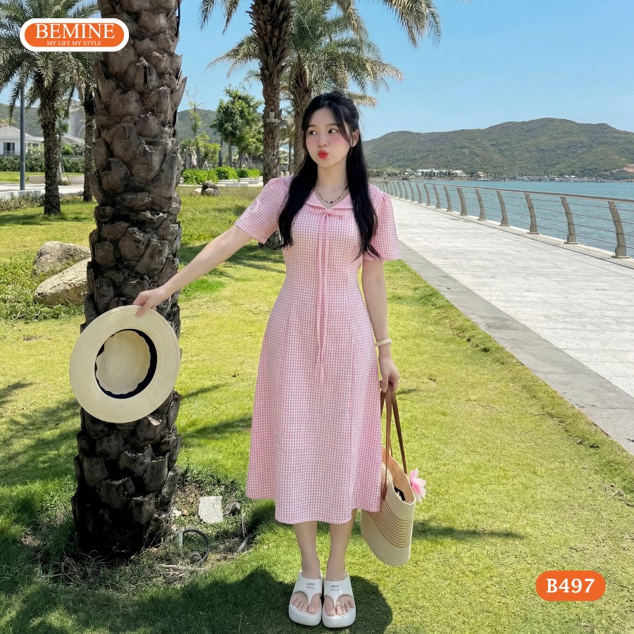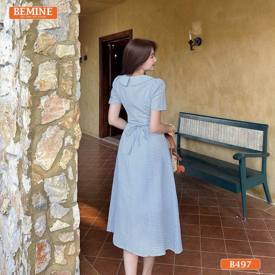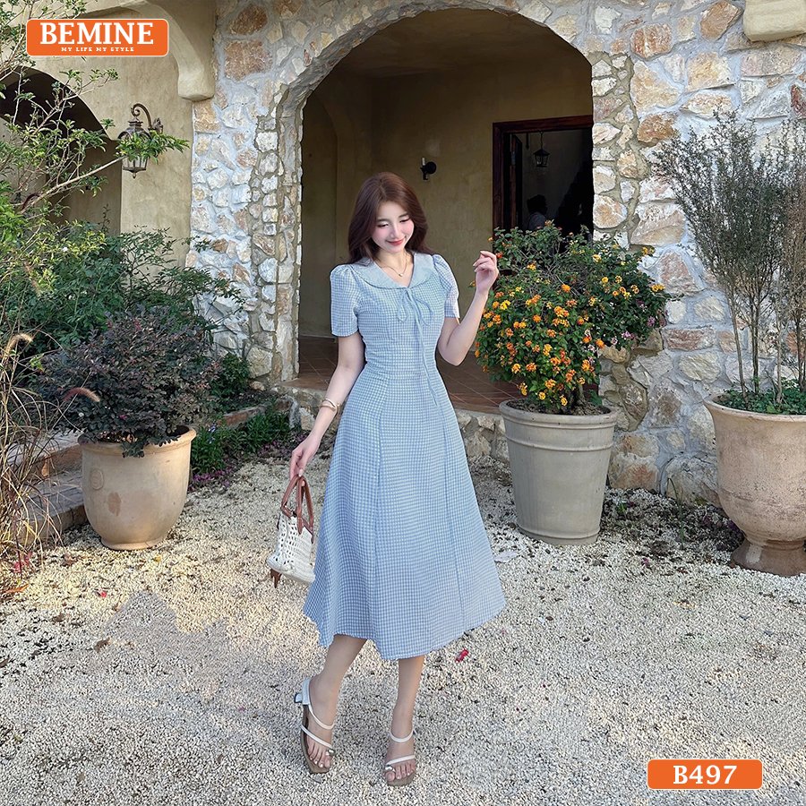 Khi bắt tay vào dựng mẫu cho chiếc đầm này, đội ngũ thiết kế của BEMINE đã trăn trở rất nhiều về việc làm sao để cân bằng giữa sự chuyên nghiệp của một bộ đầm công sở và nét nữ tính, điệu đà mà phái đẹp luôn theo đuổi. Thực tế tại cửa hàng, BEMINE nhận thấy rất nhiều Chị em lo ngại về việc mặc họa tiết caro sẽ bị già hoặc thô, nhưng với mẫu B497 này, cấu trúc vải caro xốp với những đường dập nổi nhẹ nhàng đã hoàn toàn xóa tan định kiến đó.