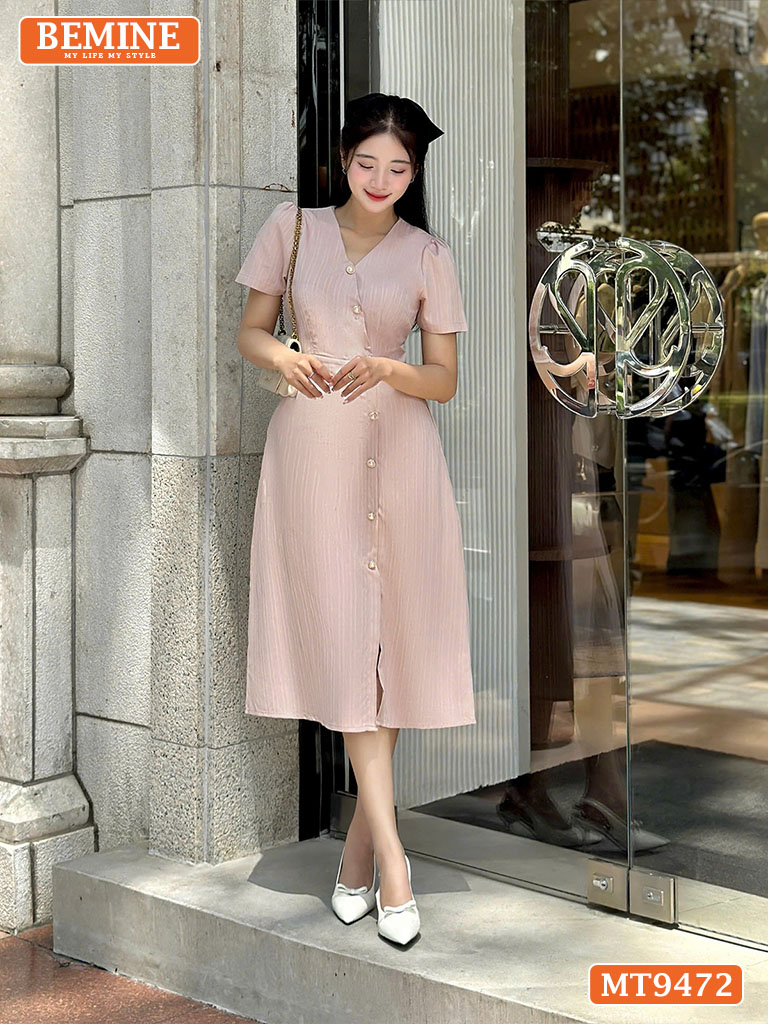 Đầm thiết kế BEMINE cổ tim vạt chéo đính nút MT9472 – Thanh Thoát và Nữ Tính