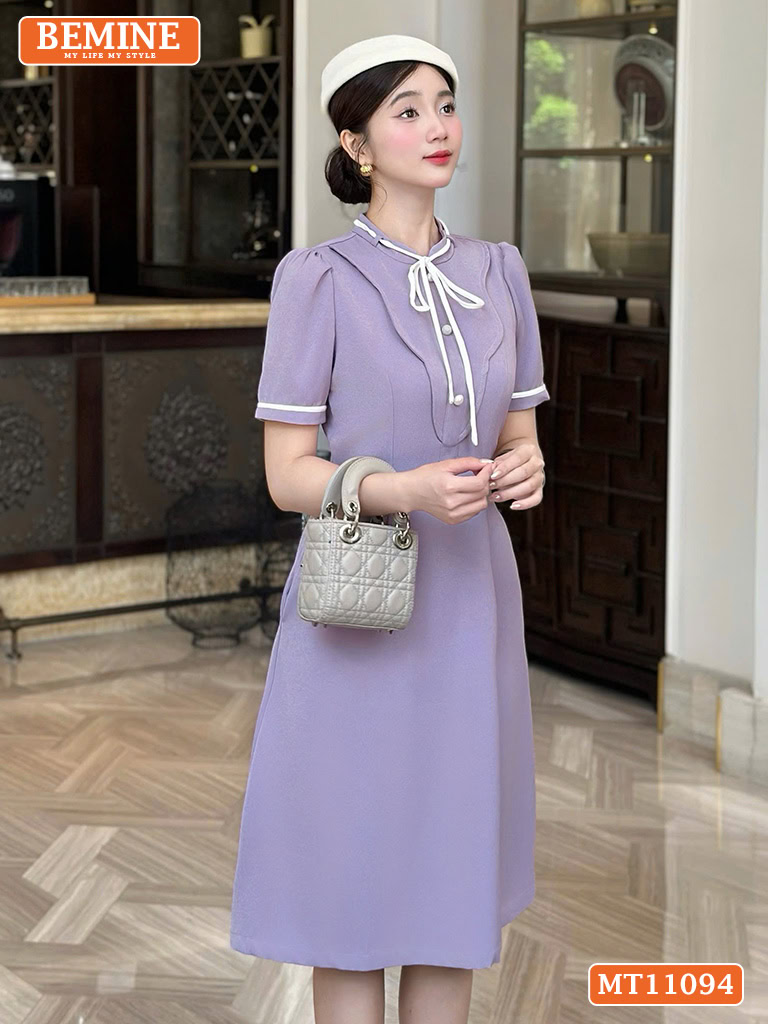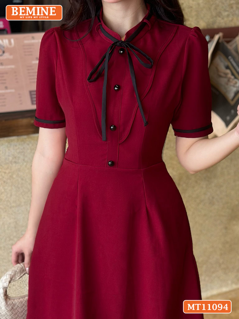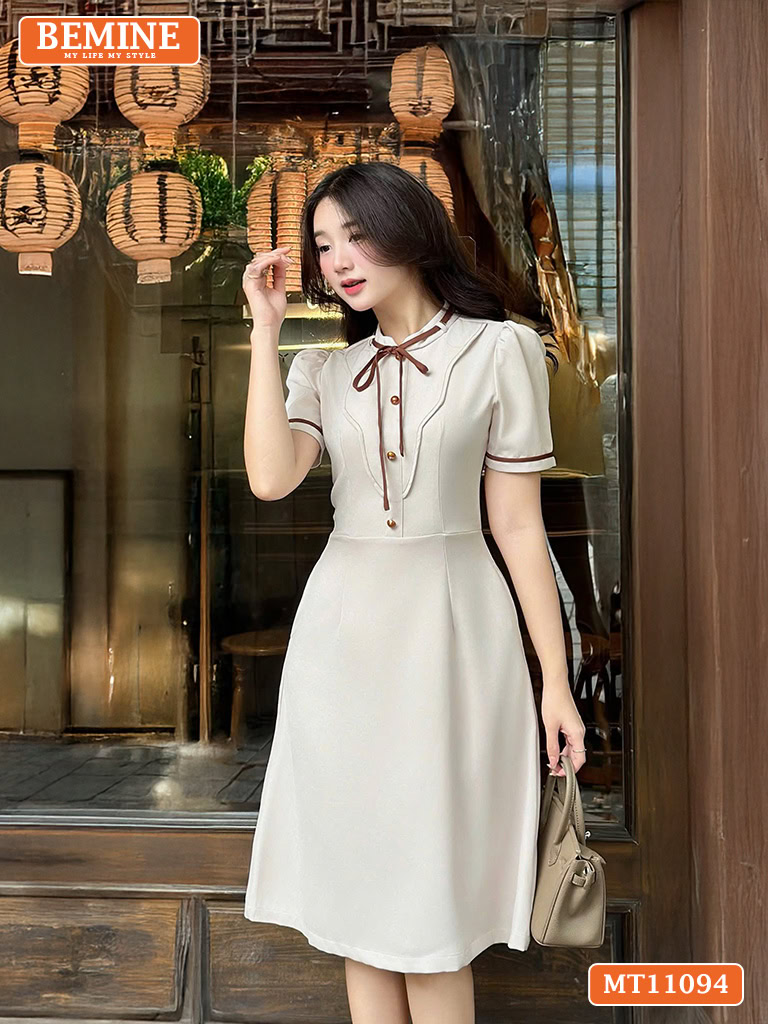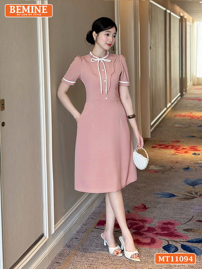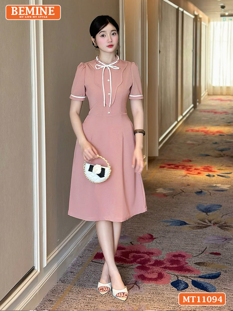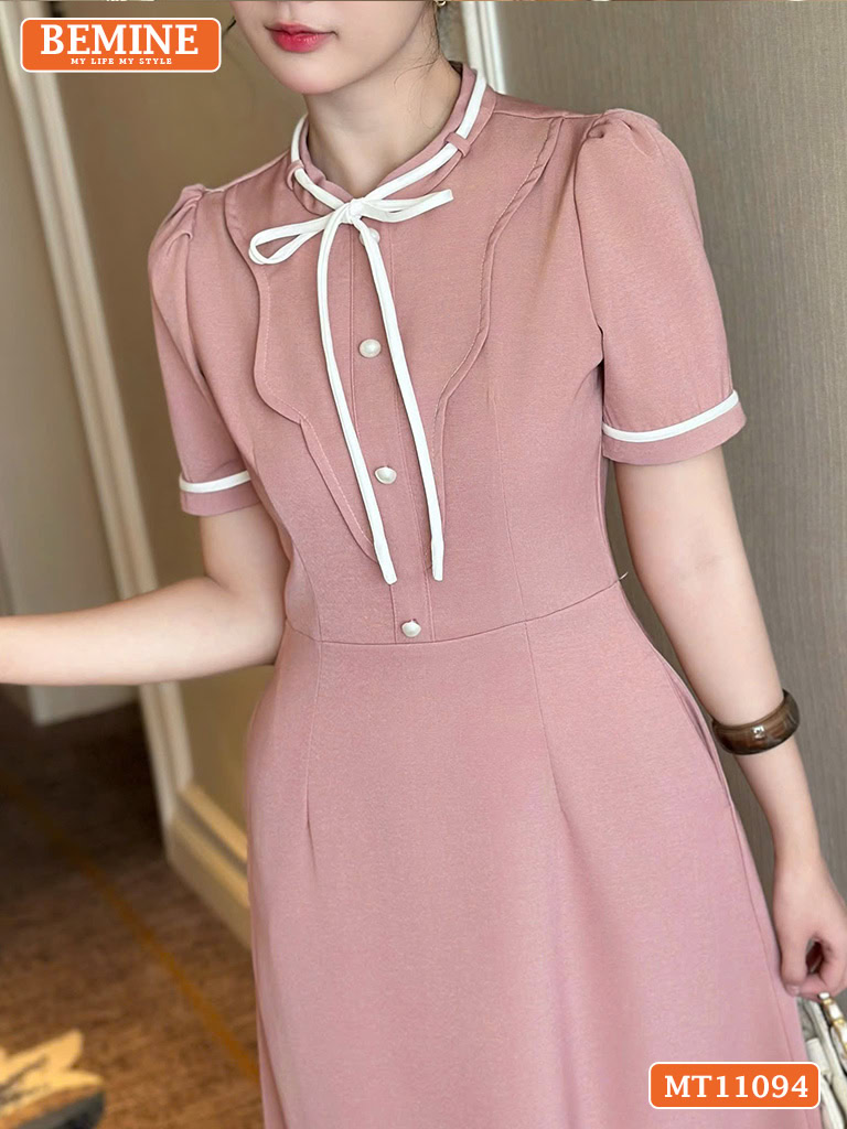 Đầm thiết kế BEMINE cổ tròn có dây nơ phối MT11094