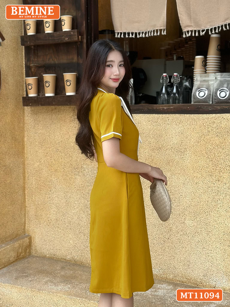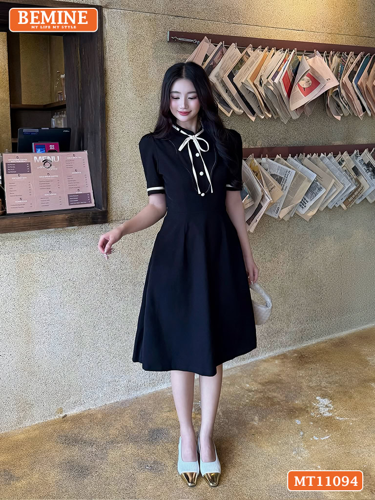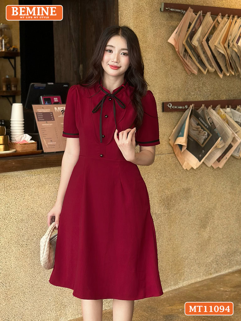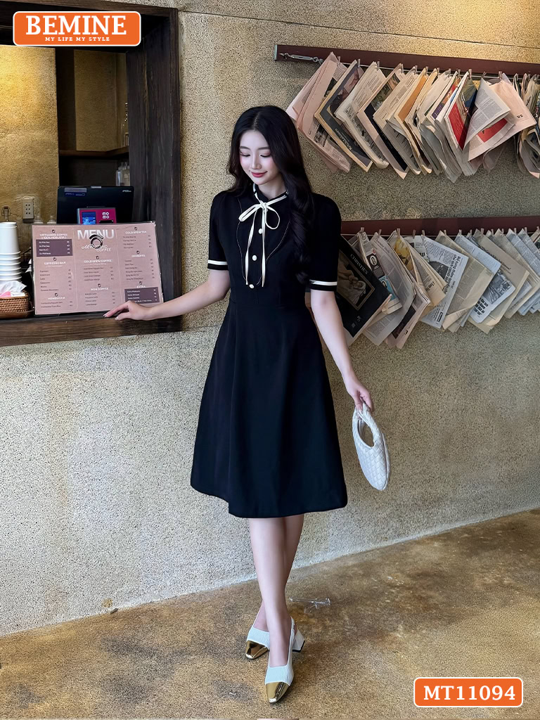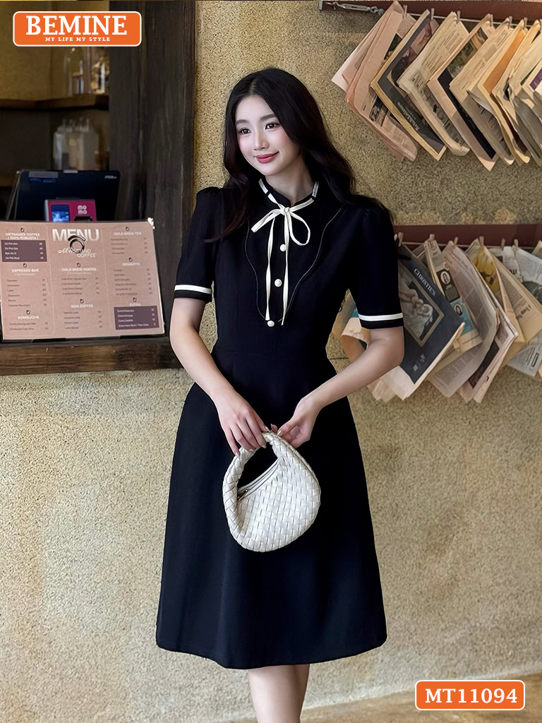 Đầm thiết kế BEMINE cổ tròn có dây nơ phối MT11094