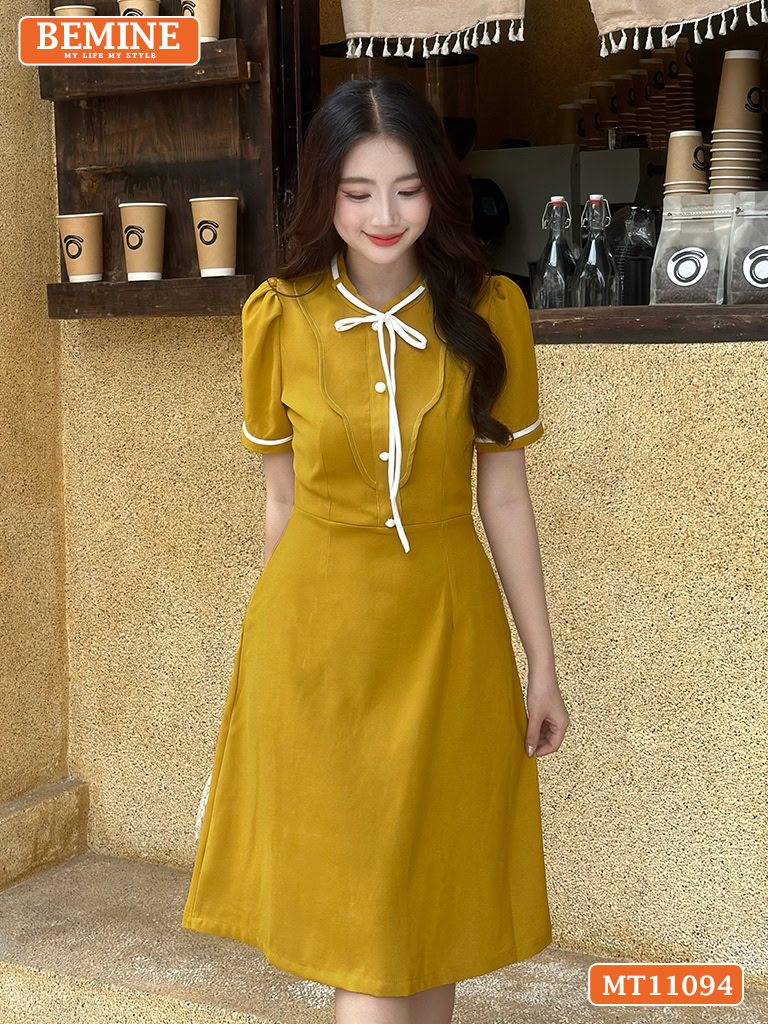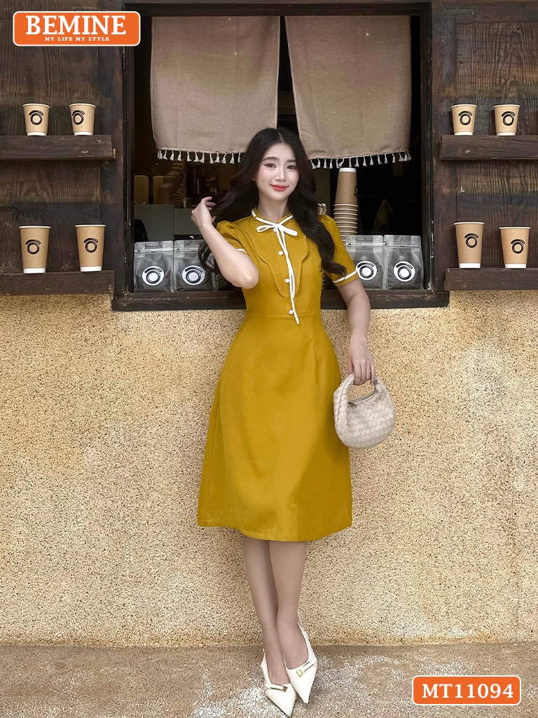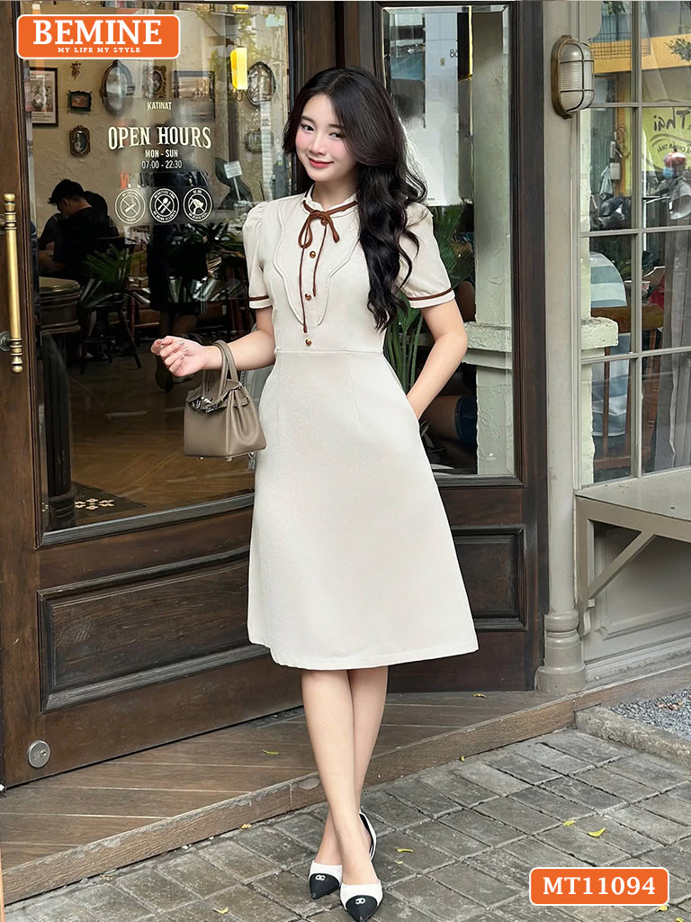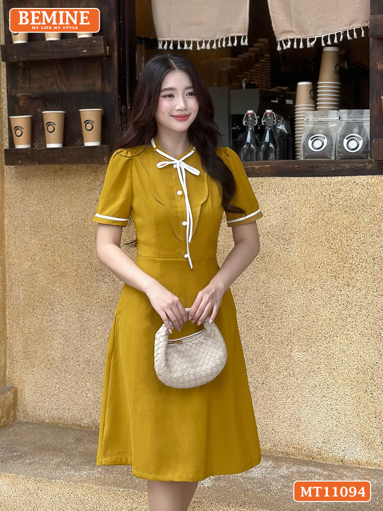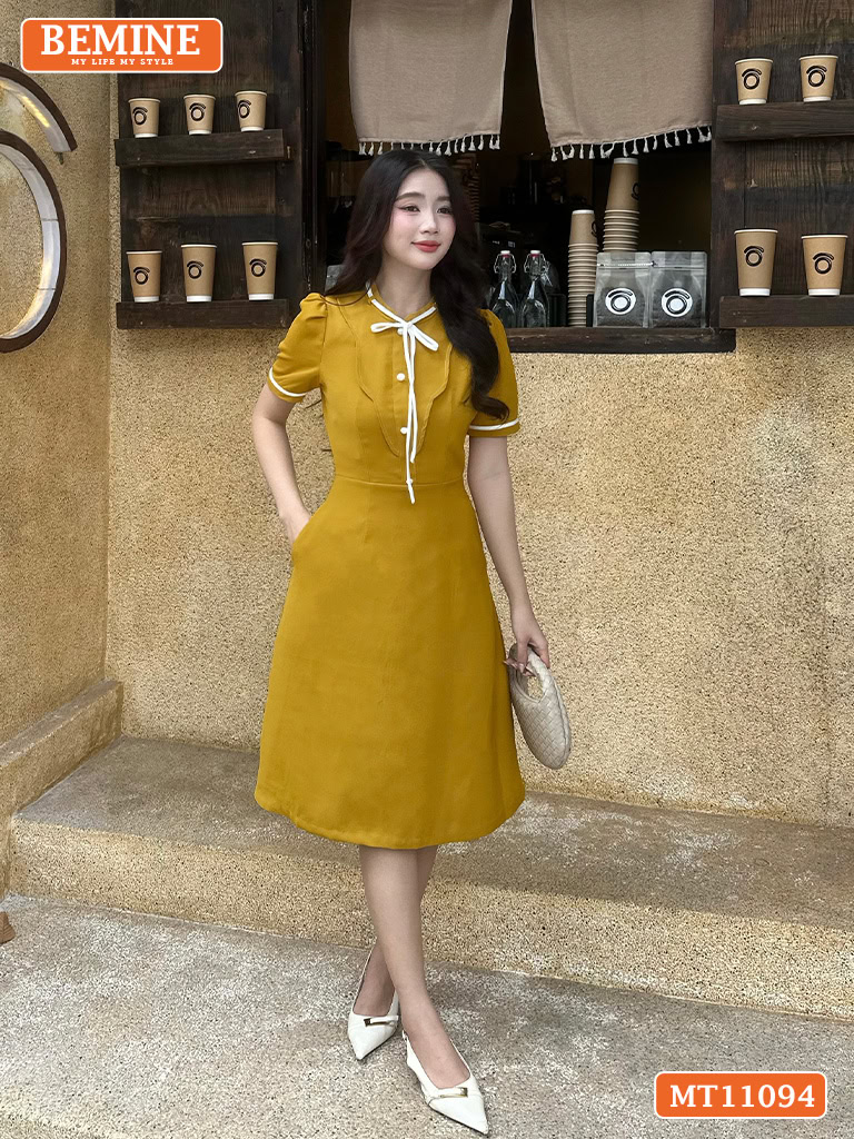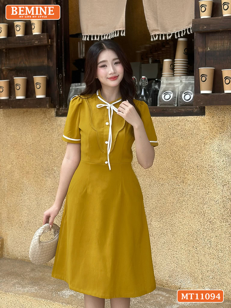 Đầm thiết kế BEMINE cổ tròn có dây nơ phối MT11094