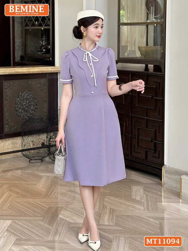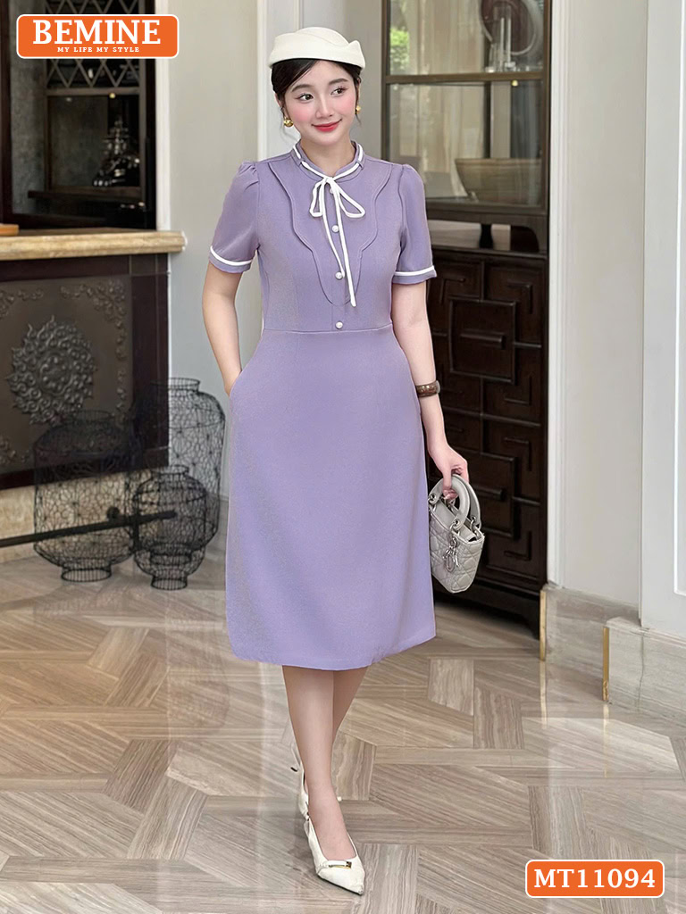 Đầm Thiết Kế BEMINE Cổ Tròn Có Dây Nơ Phối MT11094 – Thanh Lịch Cho Quý Cô Công Sở