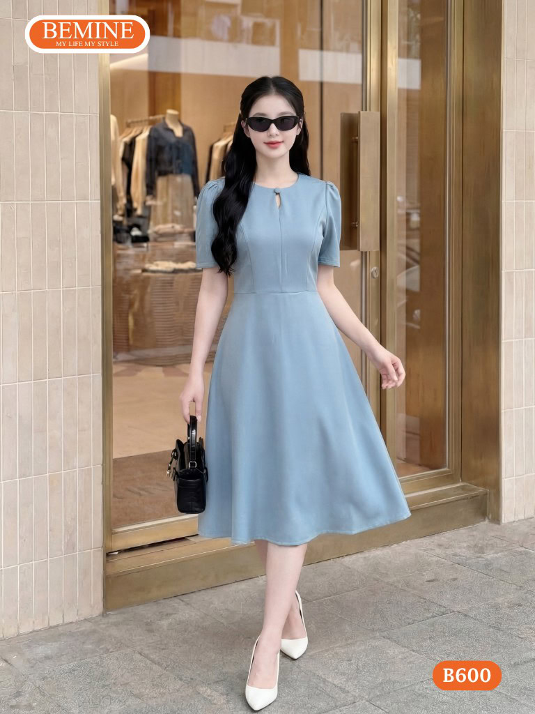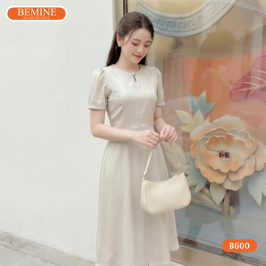 Thiết kế của B600 tập trung vào việc kiến tạo vóc dáng. Với dáng dài 105cm, đây là tỷ lệ “vàng” giúp che đi phần bắp chân nếu Chị chưa tự tin, đồng thời tạo hiệu ứng kéo dài đôi chân đáng kể. Đây là một mẫu đầm dáng dài cổ tròn tiêu biểu trong bộ sưu tập mới nhất của BEMINE.