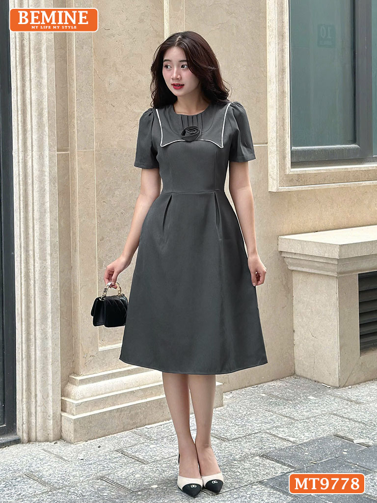 Đầm thiết kế BEMINE cổ tròn ngực đính hoa MT9778 – Tinh Tế và Sang Trọng