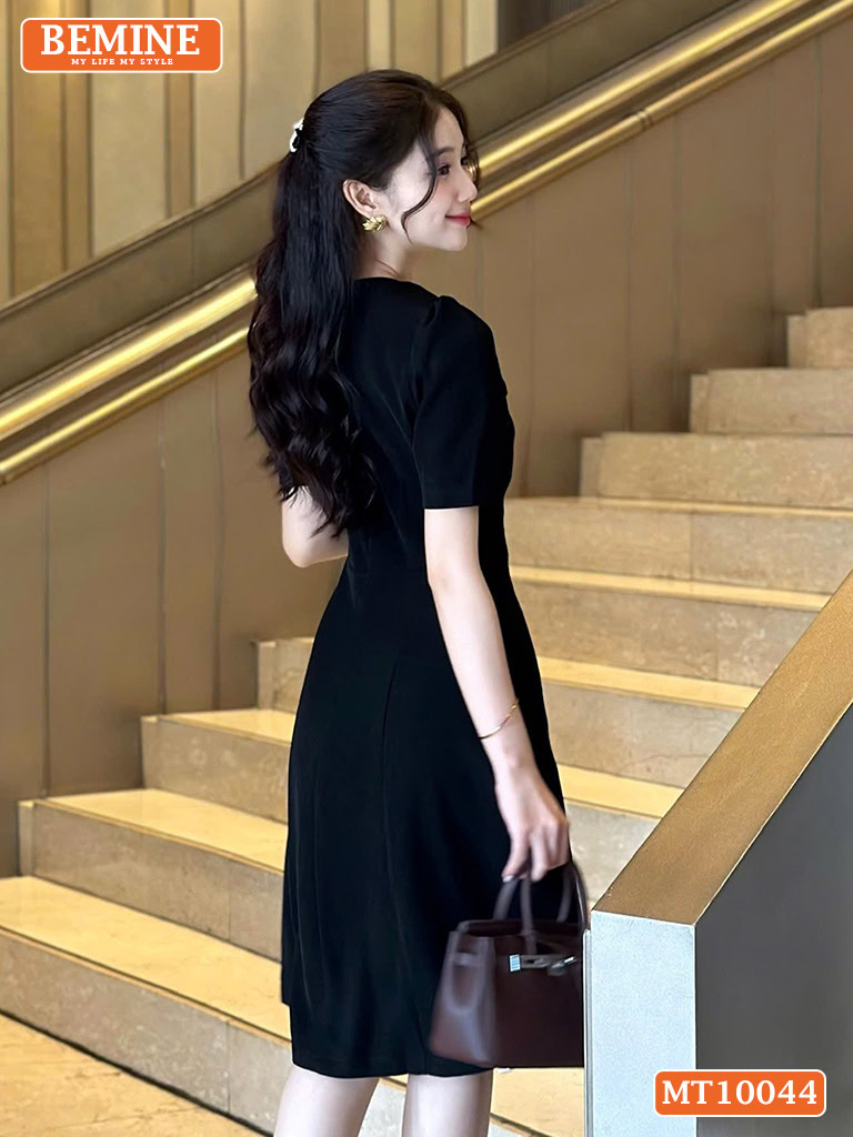 Chiếc đầm thiết kế BEMINE cổ tròn nhún ngực MT10044 dễ dàng phối hợp với các phụ kiện như giày cao gót, túi xách hoặc blazer, giúp bạn biến hóa phong cách từ công sở chuyên nghiệp đến dạo phố năng động.