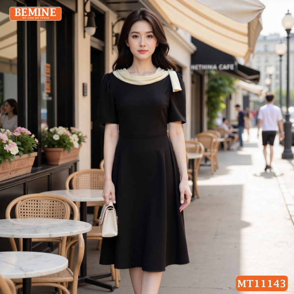 Khám phá đầm thiết kế BEMINE cổ tròn nơ vai MT11143 – lựa chọn hoàn hảo cho nàng công sở với chất liệu cotton Thái cao cấp, tôn dáng chuẩn.