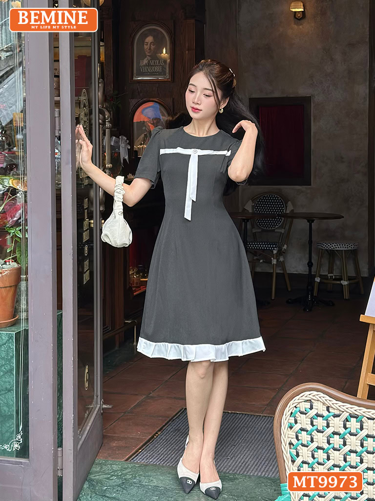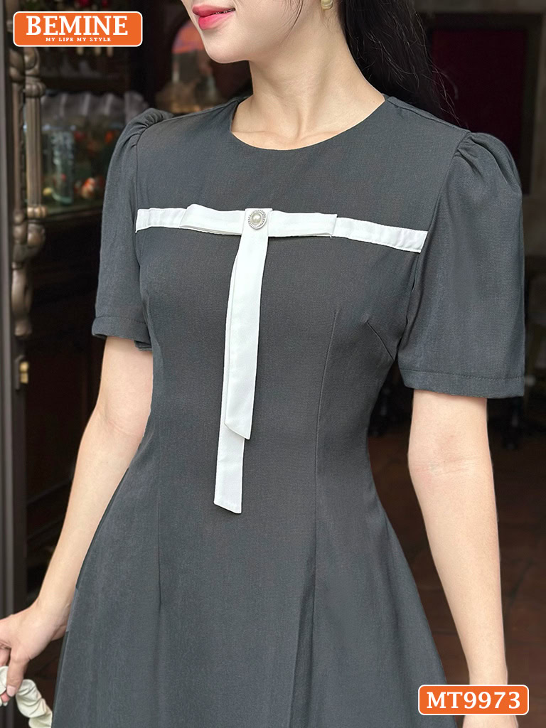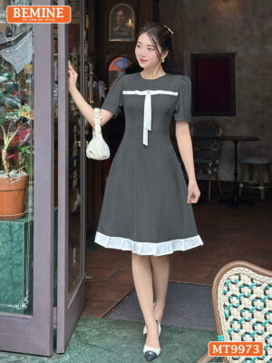 Đầm thiết kế BEMINE cổ tròn phối viền nơ MT9973 – Sự lựa chọn hoàn hảo cho phong cách công sở