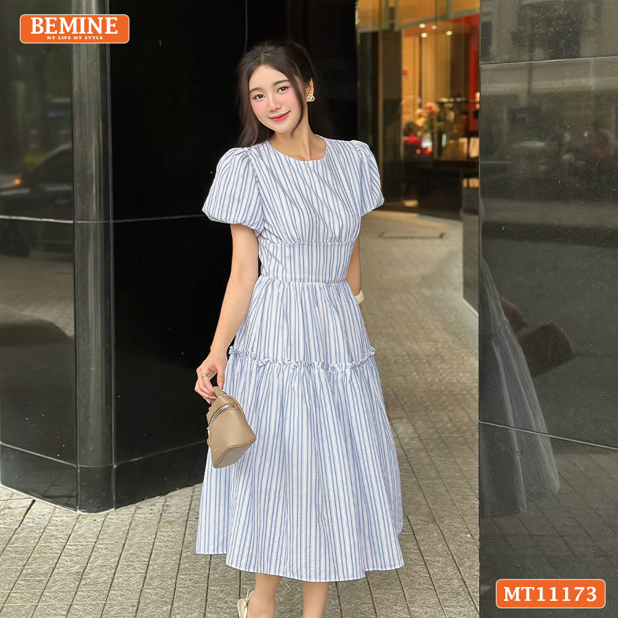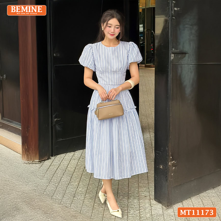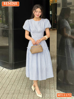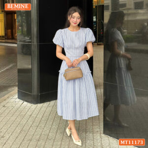 Chào anh chị, BEMINE rất vui được giới thiệu một trong những thiết kế tâm huyết nhất dành cho mùa lễ hội và du lịch năm nay. Mẫu đầm thiết kế BEMINE cổ tròn tay phồng dáng xòe dài phù hợp đi chơi MT11173 là sự kết hợp hoàn hảo giữa nét cổ điển và tinh thần hiện đại, giúp tôn vinh vẻ đẹp dịu dàng của phái nữ.