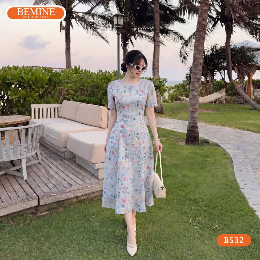Khi bắt tay vào thực hiện mẫu đầm thiết kế B532, đội ngũ BEMINE đã dành rất nhiều thời gian để lựa chọn loại vải xô hoa thêu có mật độ họa tiết vừa phải, không quá dày đặc gây rối mắt nhưng cũng không quá thưa thớt làm mất đi vẻ sang trọng. BEMINE hiểu rằng, với các Chị em văn phòng, một chiếc đầm dáng dài đi làm cần phải hội đủ ba yếu tố: sự thoải mái suốt 8 tiếng, vẻ ngoài chuyên nghiệp và khả năng ứng dụng linh hoạt sau giờ làm.