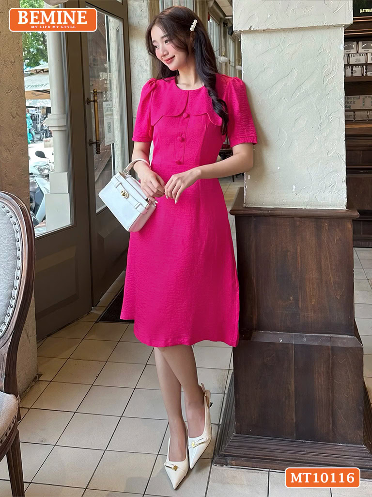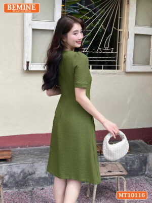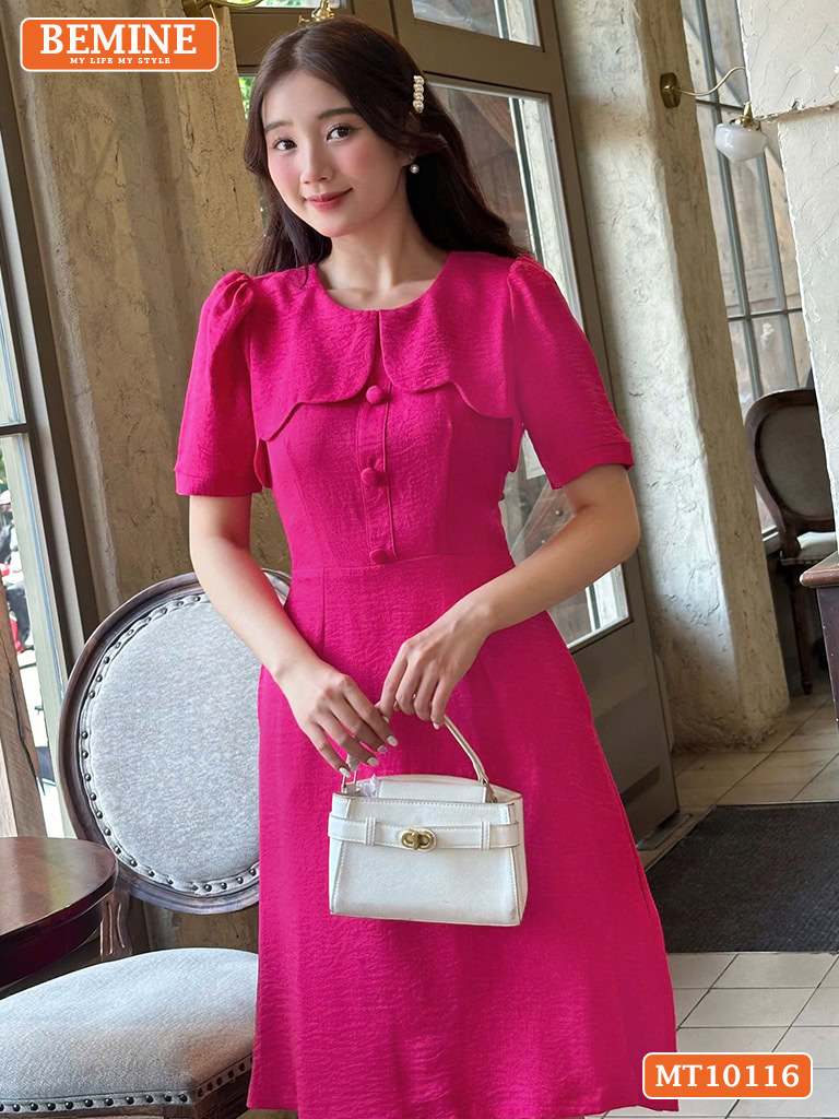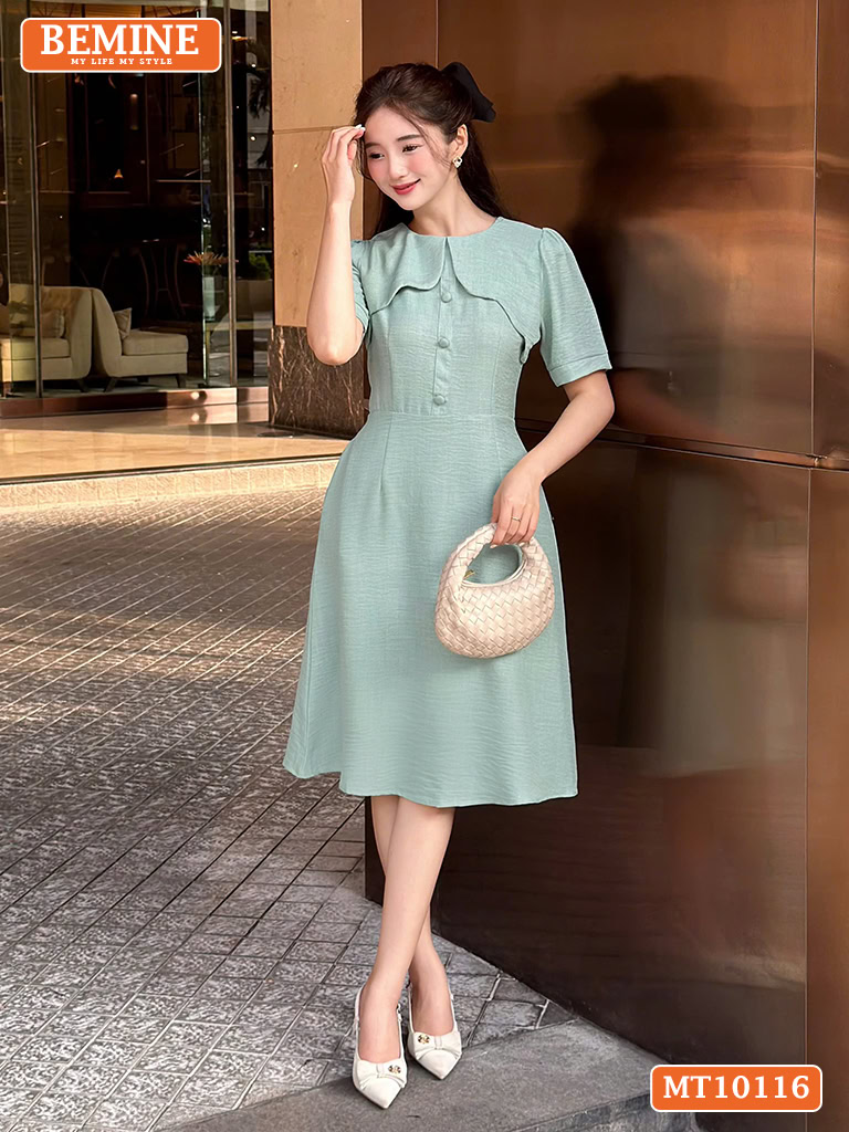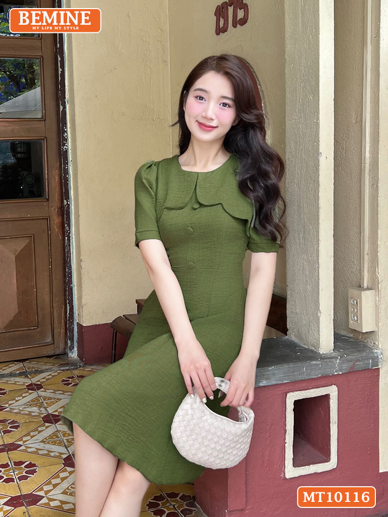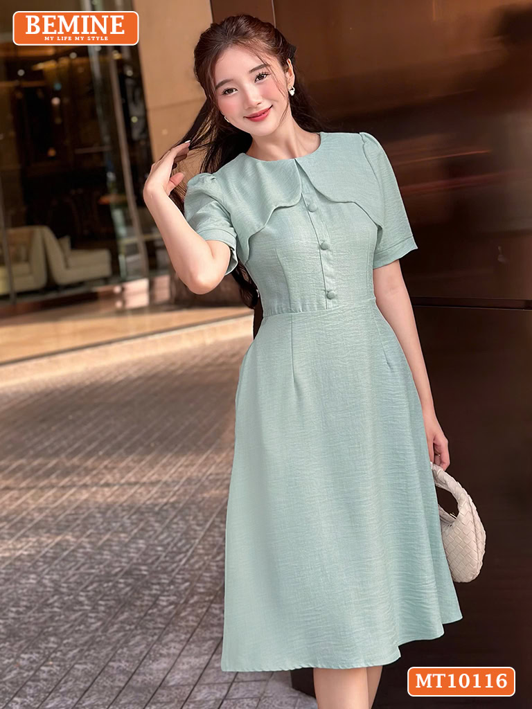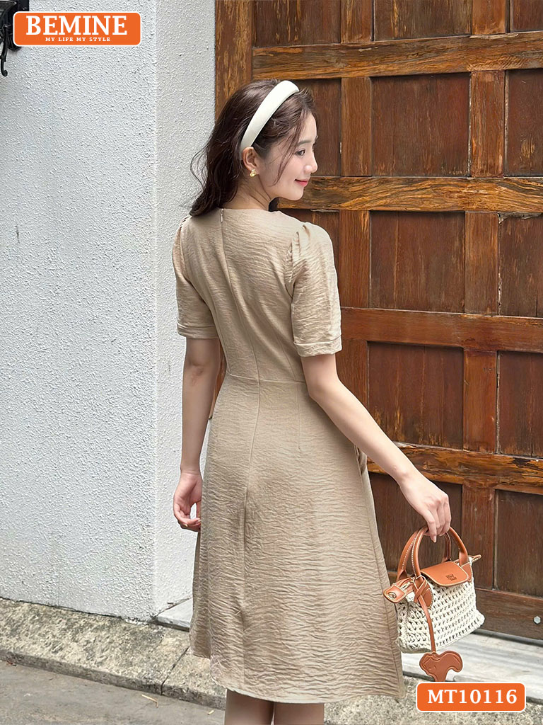 Đa Dạng Phong Cách Với Đầm thiết kế BEMINE cổ tròn vạt giả MT10116