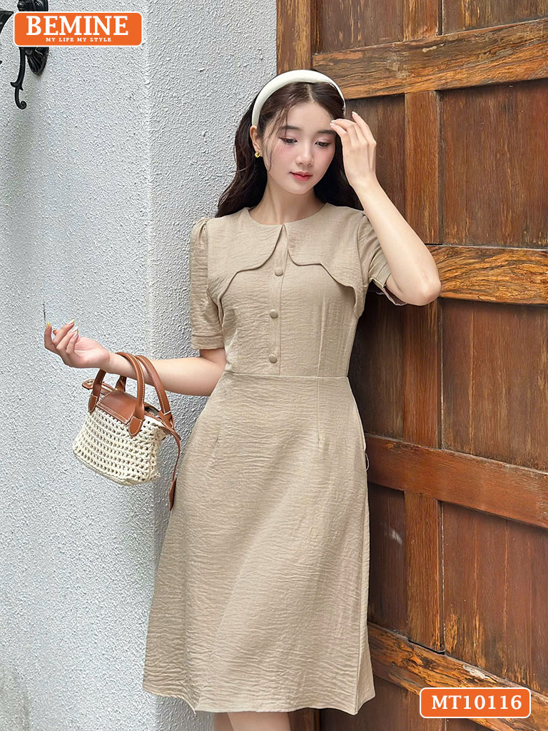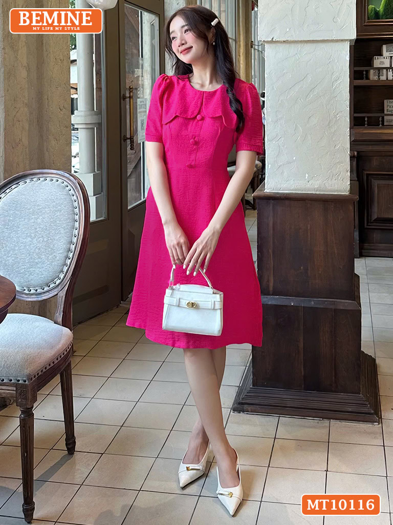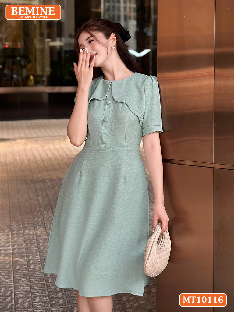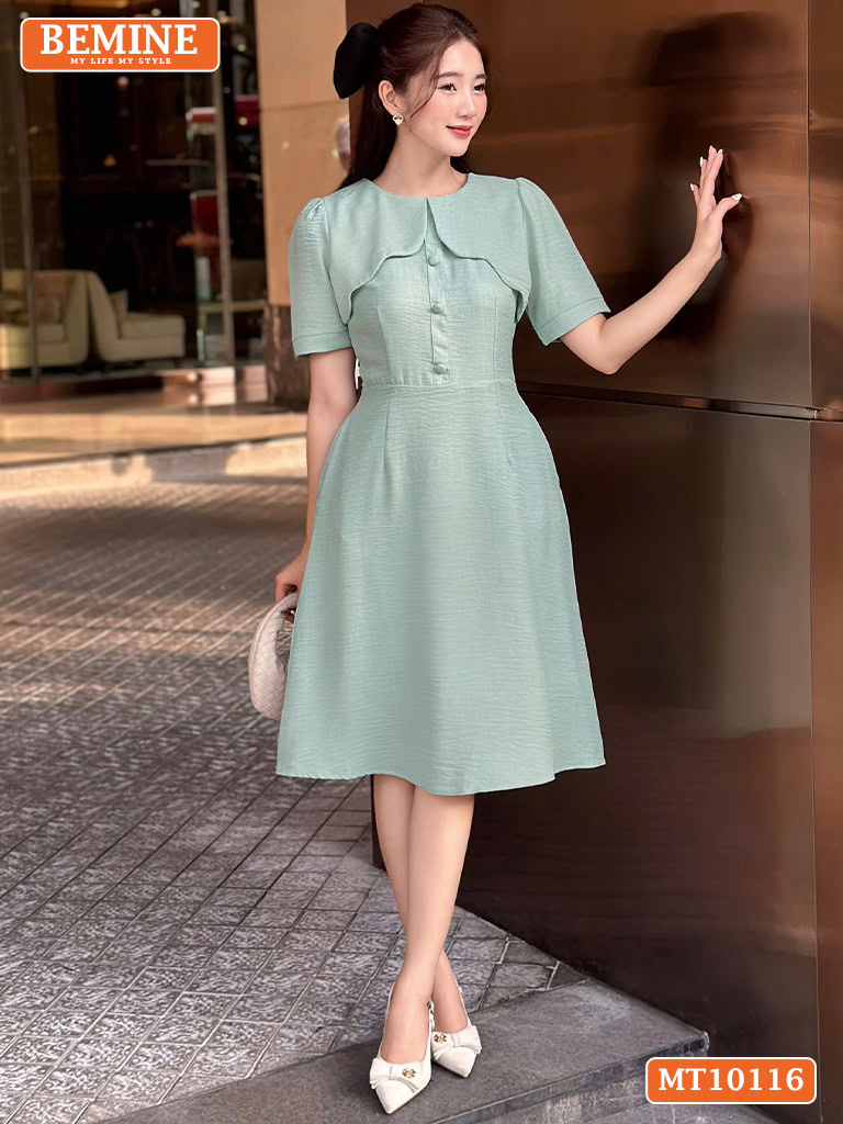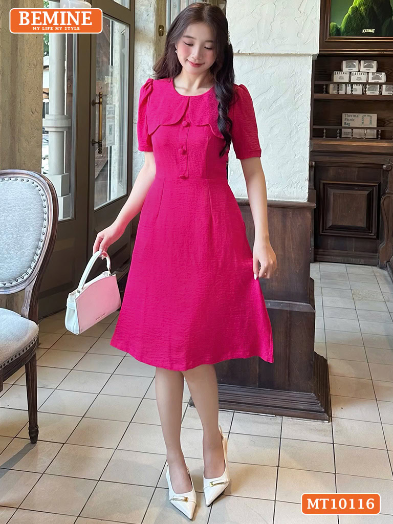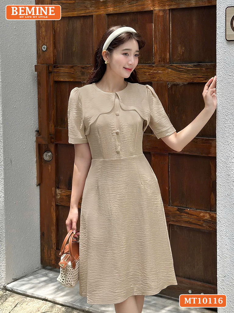 Đa Dạng Phong Cách Với Đầm thiết kế BEMINE cổ tròn vạt giả MT10116